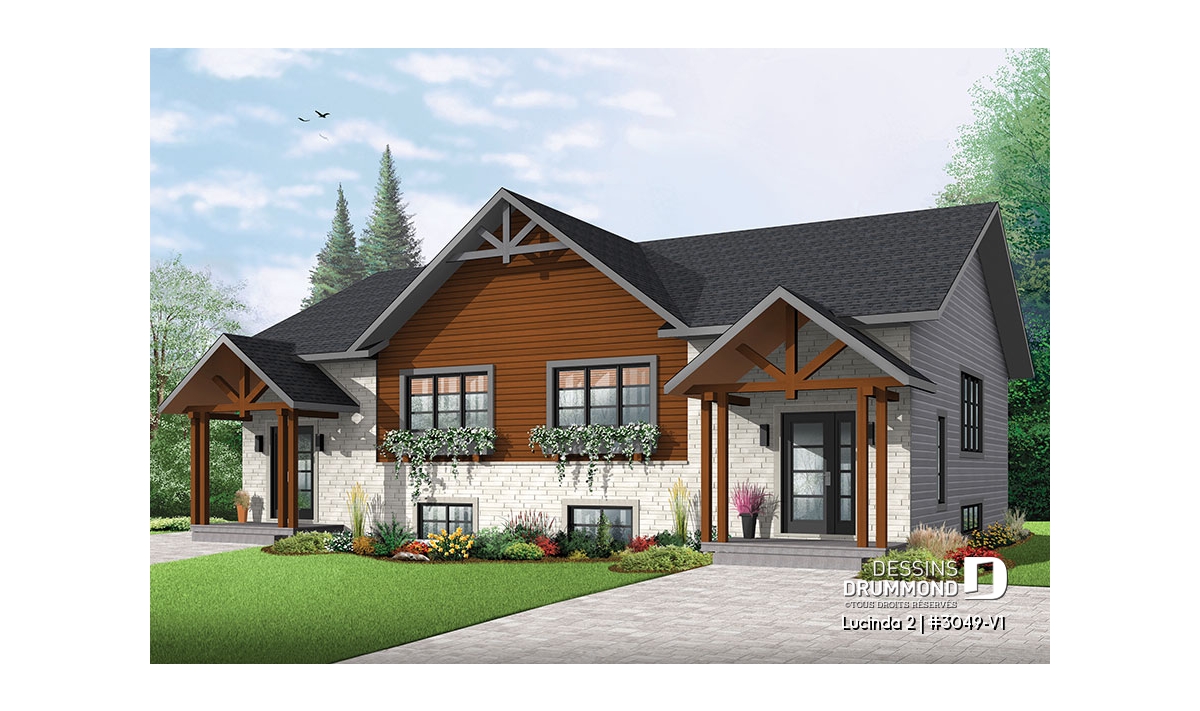 Conçu à partir du plan jumelé #3049 dont la popularité est toujours au rendez-vous, ce modèle version propose une approche davantage contemporaine tant pour l’extérieur que l’intérieur.