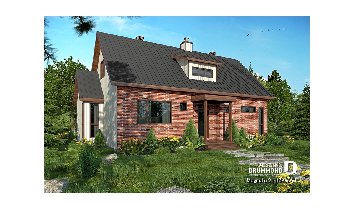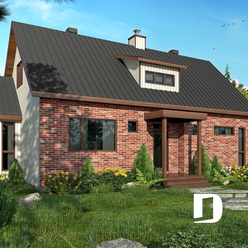 Maison ou chalet au look tendance fermette moderne, avec façade en brique rouge!