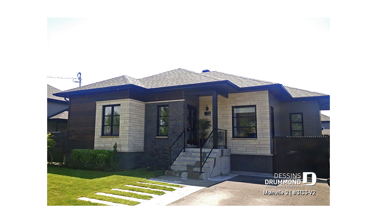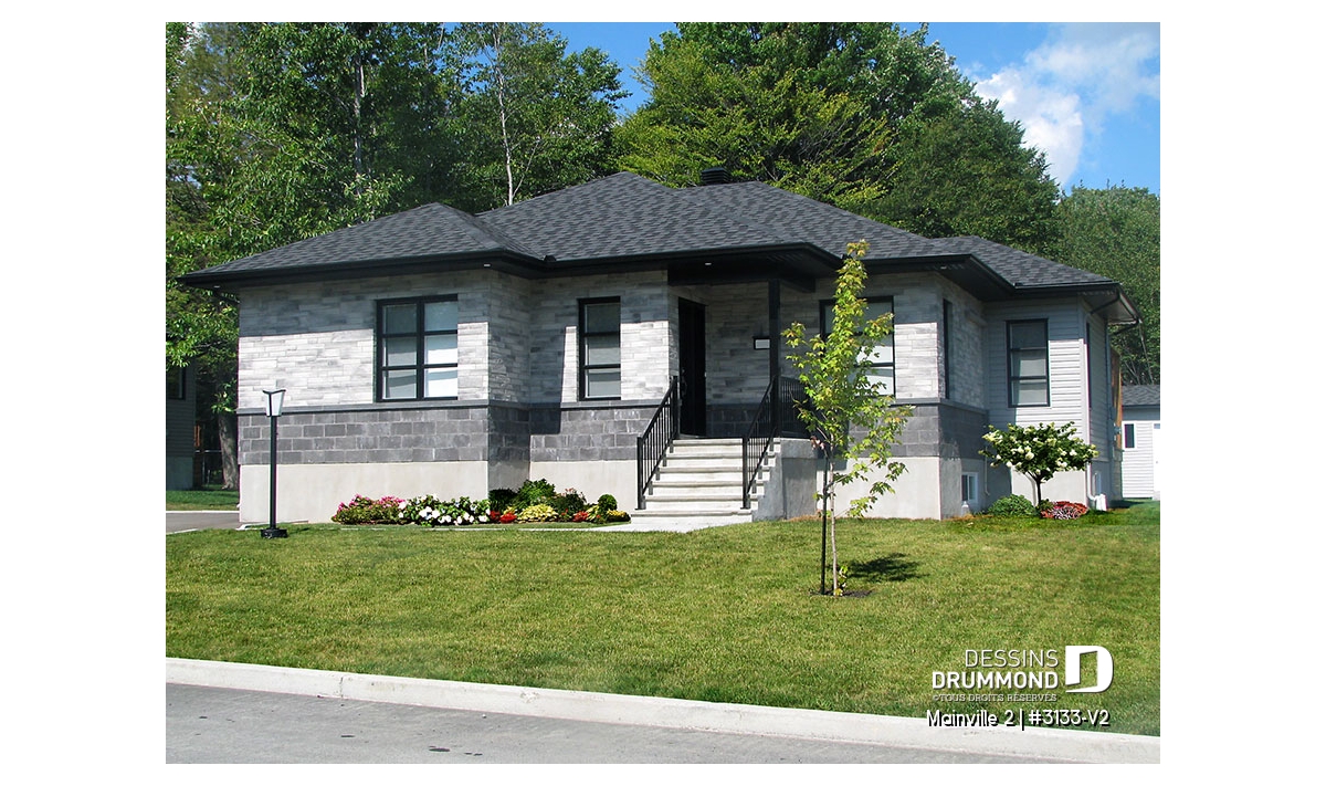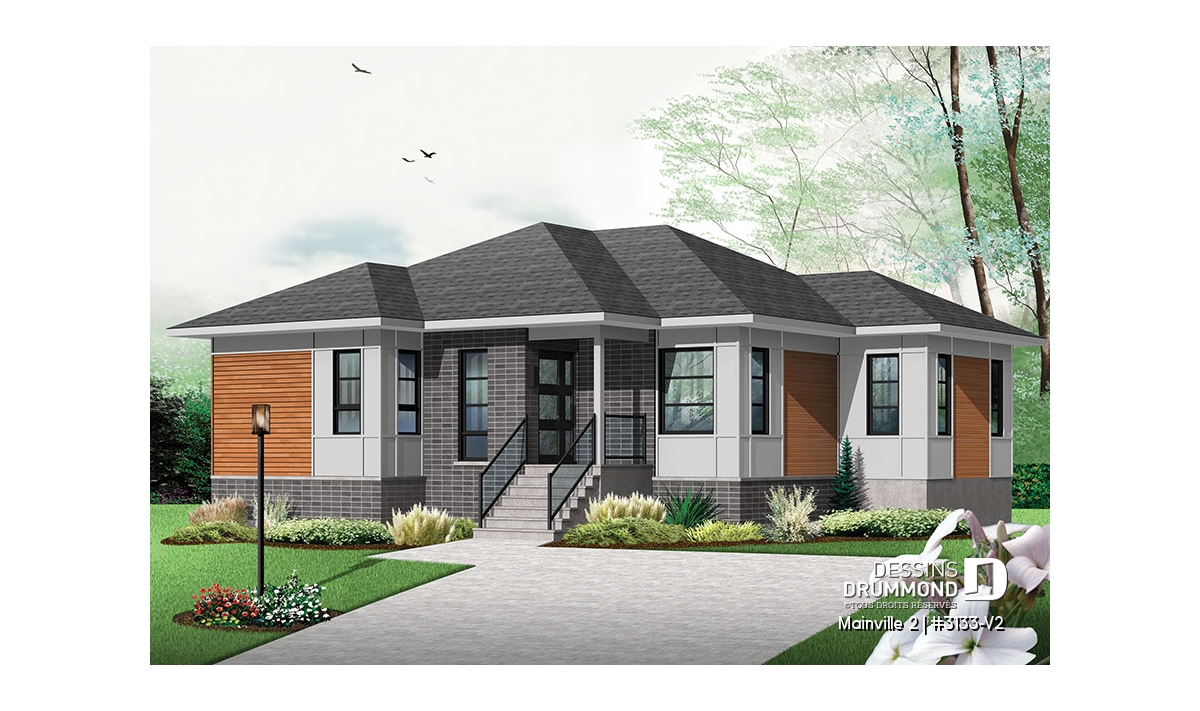 Conçu à partir du très populaire plan 3133, ce modèle version, d’approche contemporaine, se veut un peu plus confortable avec l’addition de 40pi2 de surface de plancher et la conversion du plan d’origine de trois chambres en version deux chambres.