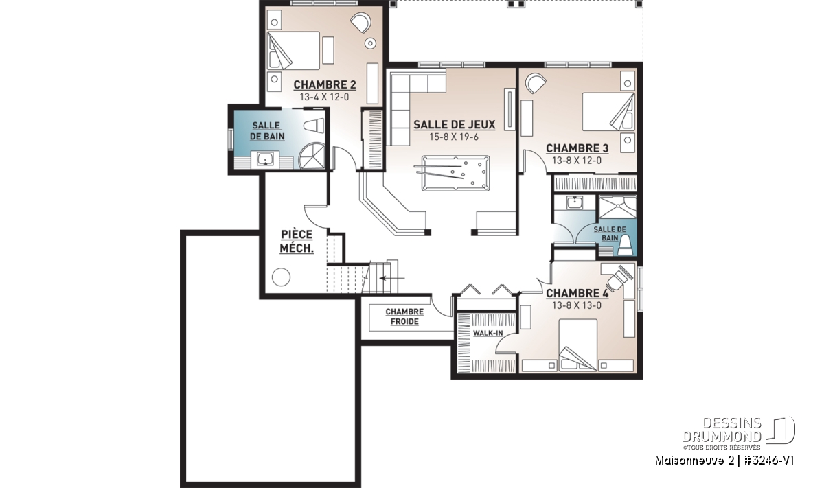 Fenestration tout de même attrayante pour les chambres et la salle de jeux du sous-sol.