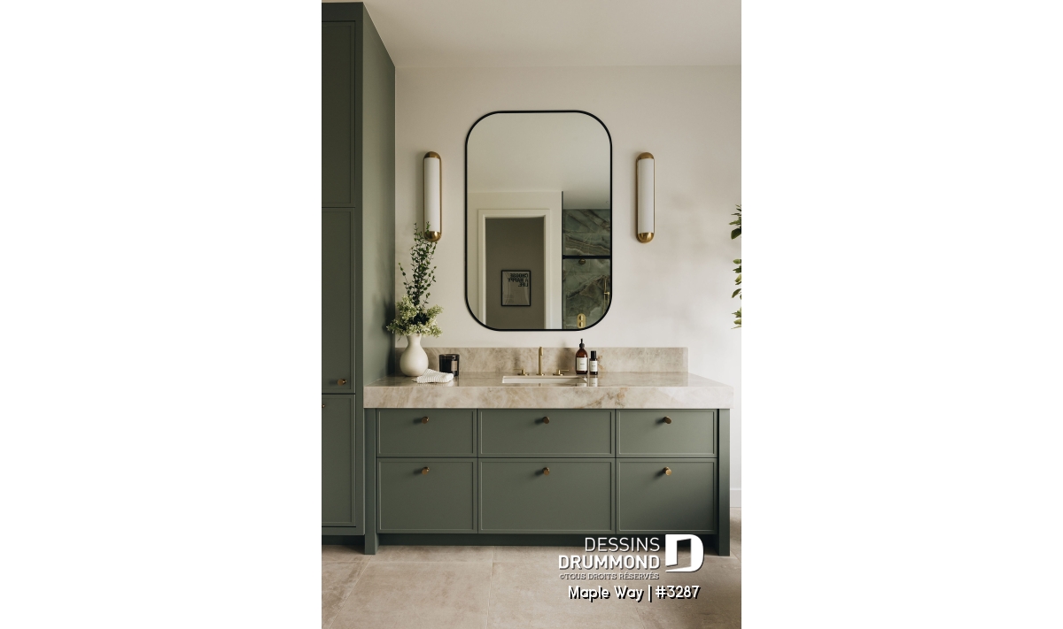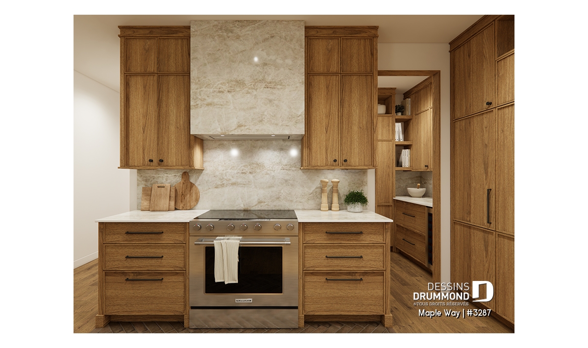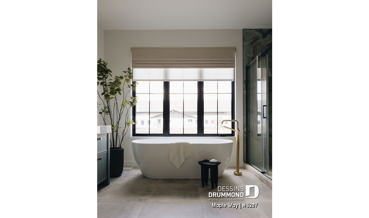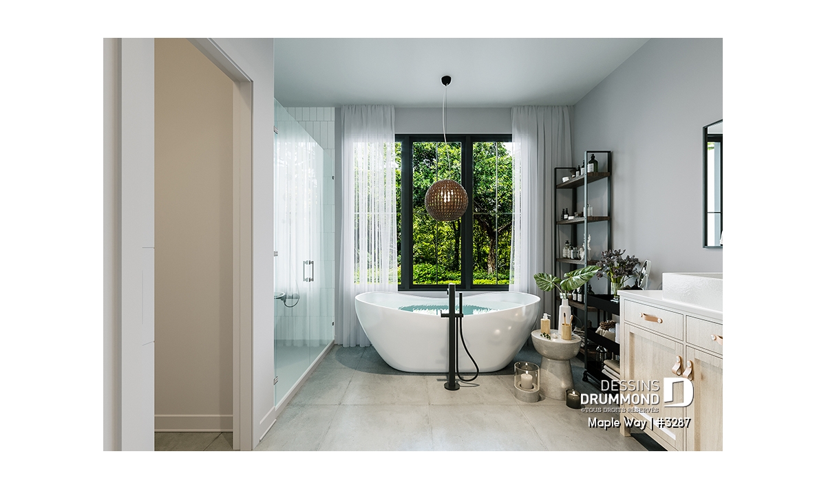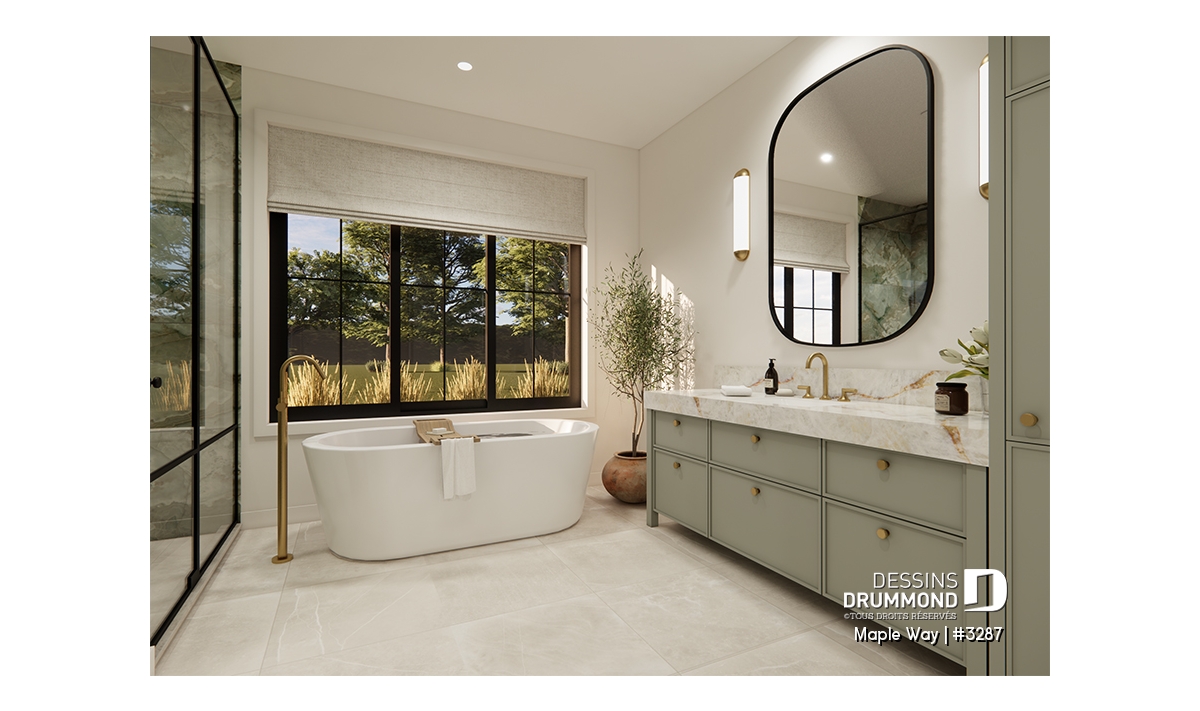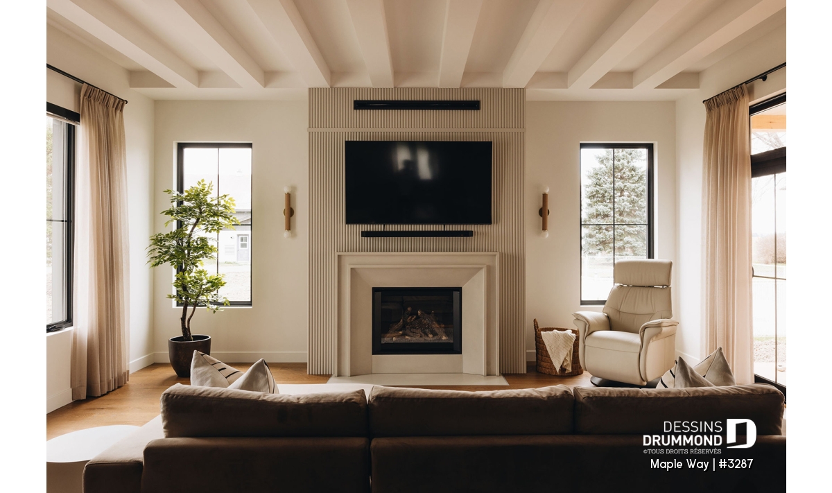 Le plan de maison de plain-pied Maple Way (plan #3287) propose un plancher de 1788 pi.carré, un garage double ainsi qu'une grande terrasse abritée.