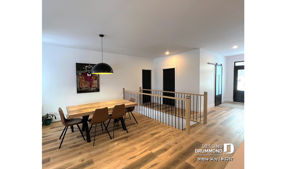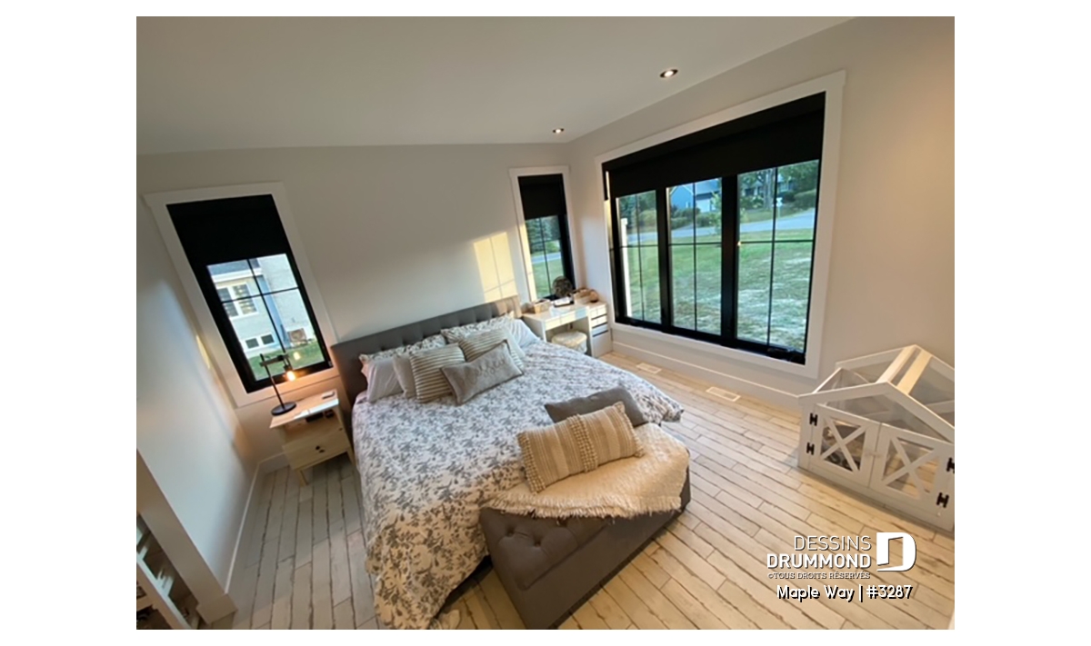 On y retrouve 3 chambres, dont une pouvant être convertie en bureau à domicile avec sa propre entrée à partir du vestibule, pour plus d'intimité à la famille. Cette chambre #3 ou bureau a un plafond cathédral.