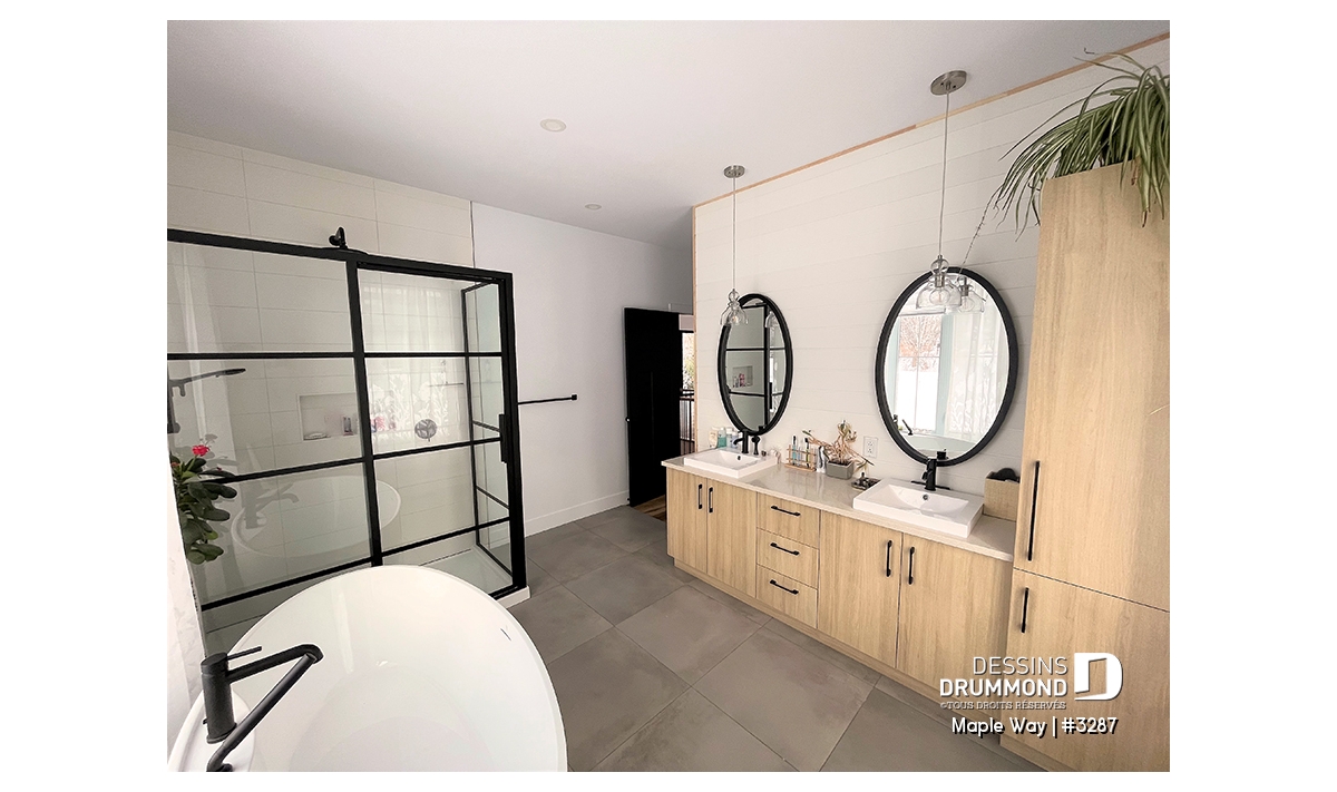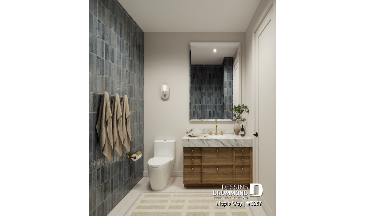 Une salle de lavage complète et une salle de douche sont stratégiquement localisées près du secteur chambre à coucher.