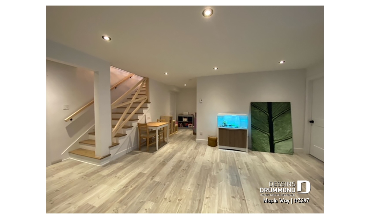 Le garage double propose une descente au sous-sol et un grand vestiaire aménagé, dès que l'on entre dans la maison. Le sous-sol est non-fini, vous pourrez l'aménager selon vos besoins.