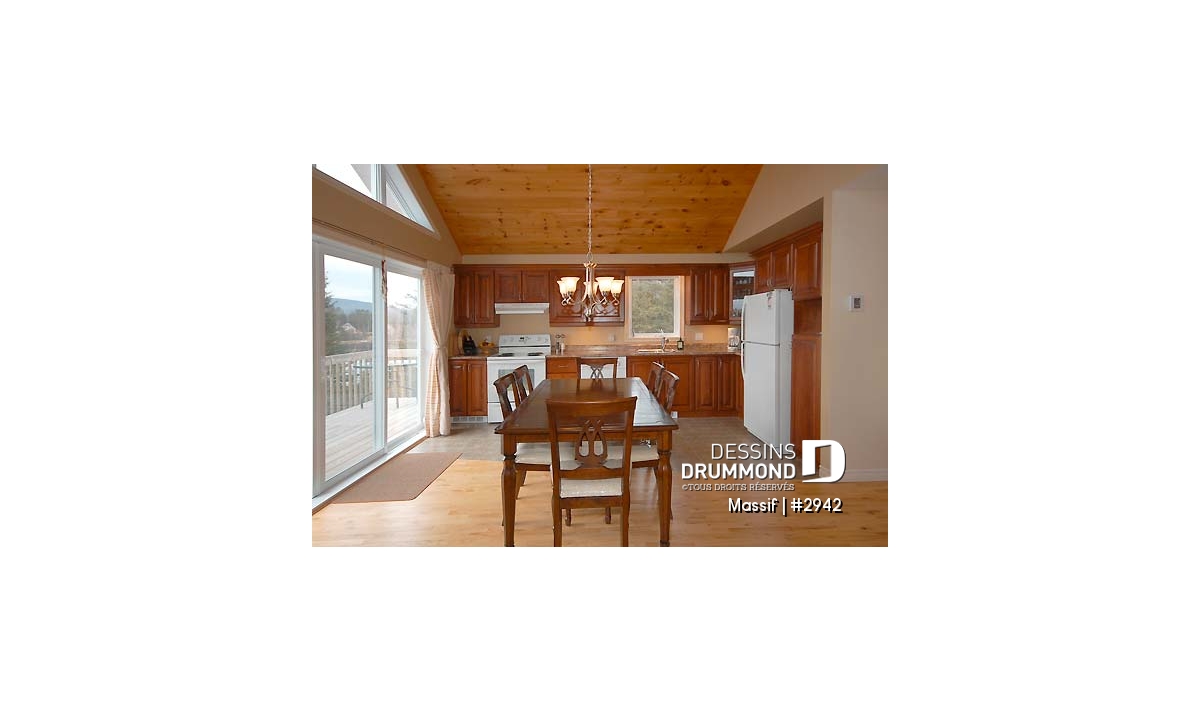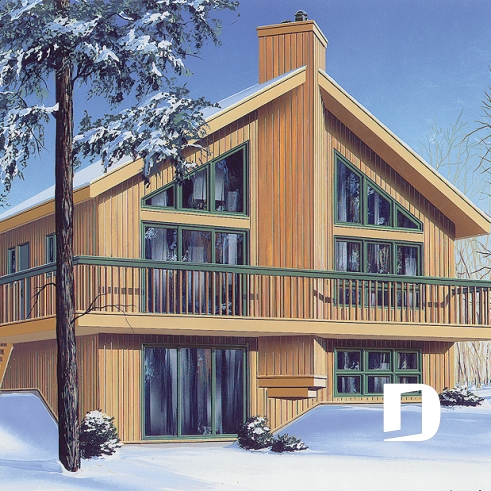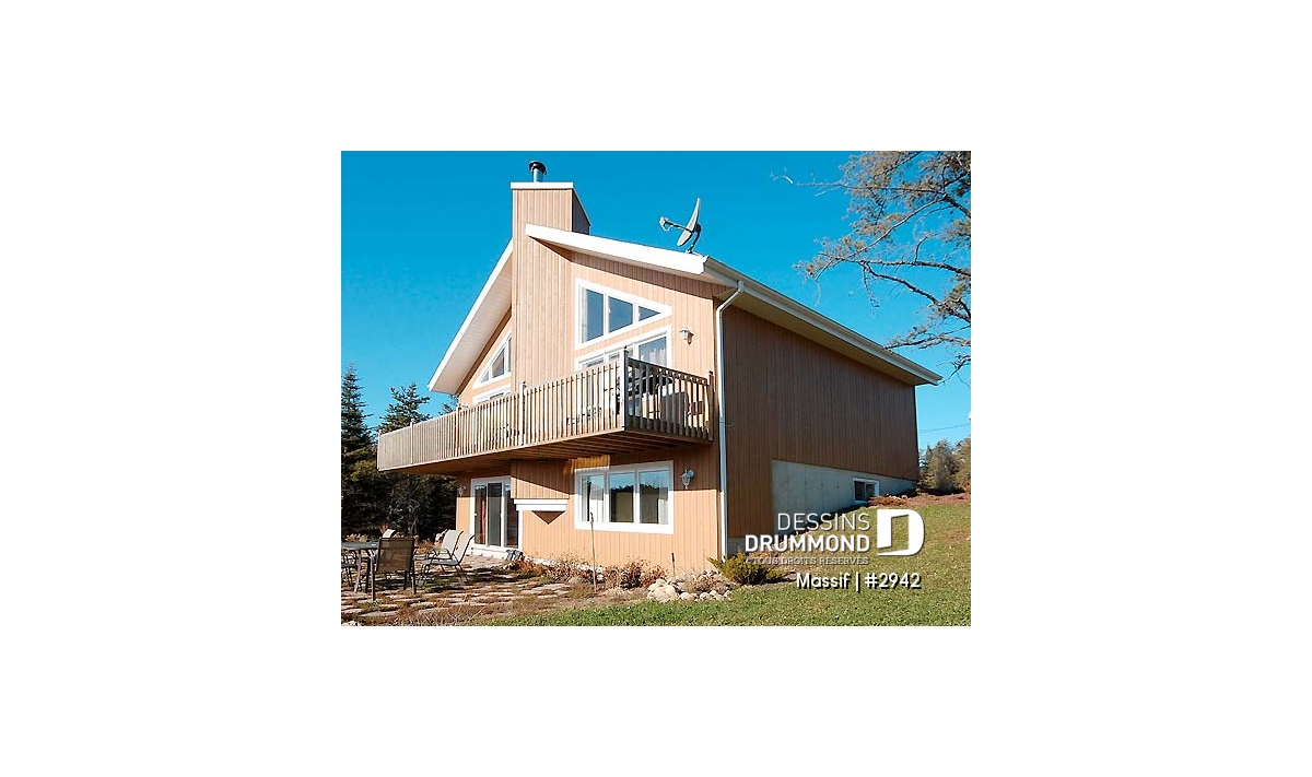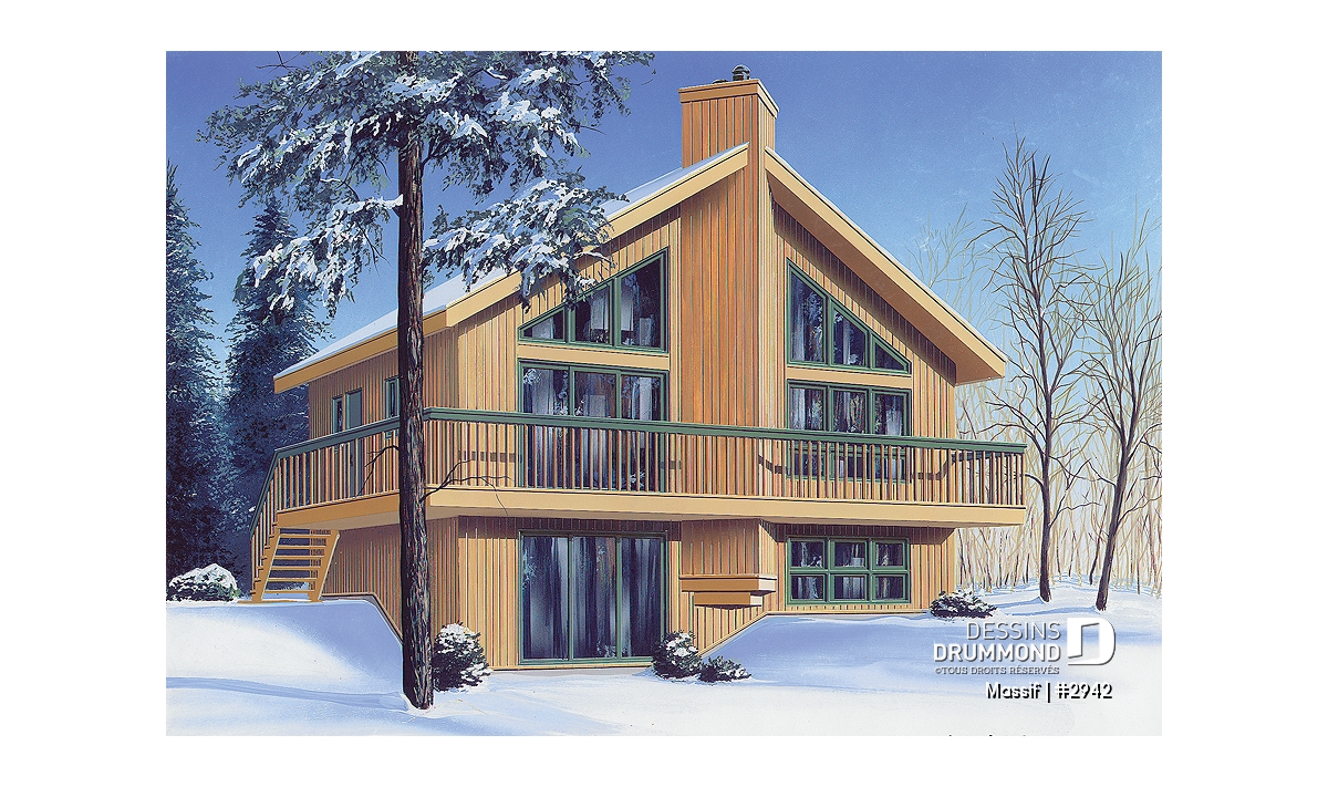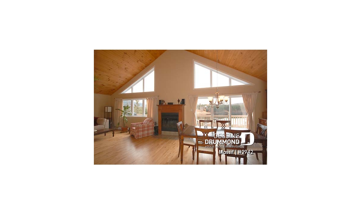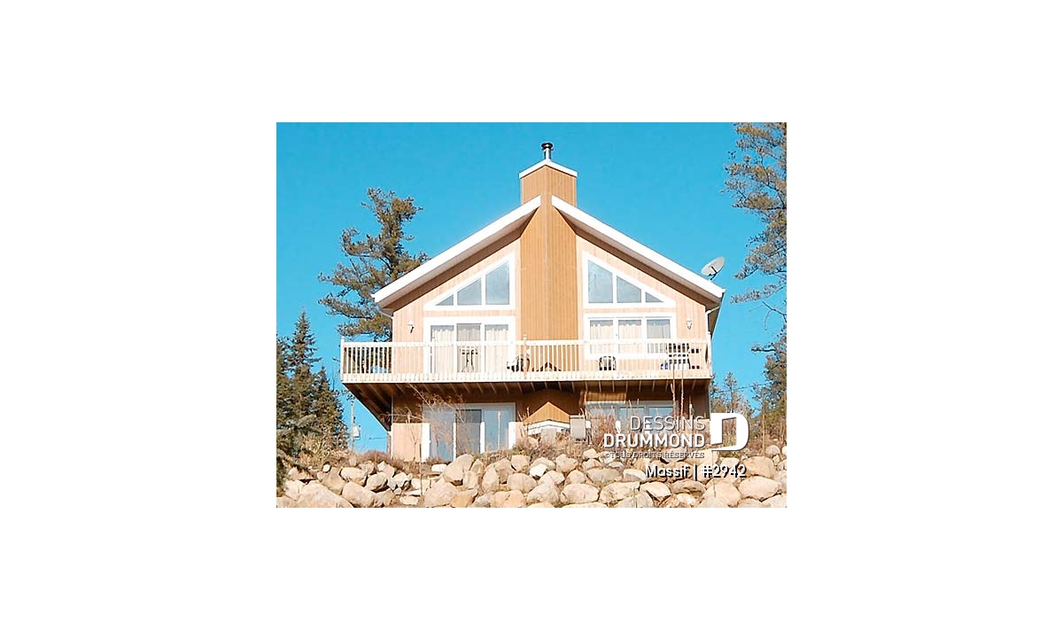 Modèle de chalet avec plancher 1 à 3 chambres, vue panoramique, espace ouvert, grand foyer & superbe terrasse