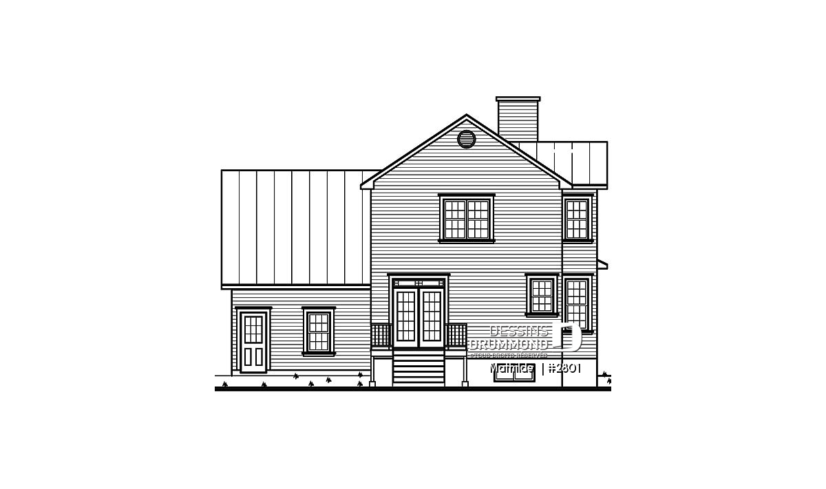 Ici, rien n’échappe au concepteur. Une grande galerie avant et latérale assure l’accès à la porte principale et à une porte secondaire donnant sur la salle à manger. Un volume avant en angle et sur deux étages procure charme et lumière tant à la salle de séjour qu’à la chambre des maîtres. Un garage suffisamment imposant et aménagé à palier permet l’obtention d’un espace boni attrayant et accessible à mi-chemin entre les deux planchers.