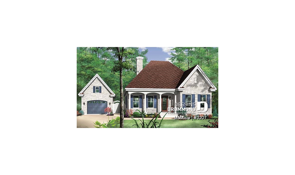 On a qu’à observer cette belle galerie avant ou bien ce foyer dont la cheminée surpasse la toiture d’agréable façon sans oublier ce garage en retrait offrant un étage rangement et dont le plan vous est offert gratuitement.