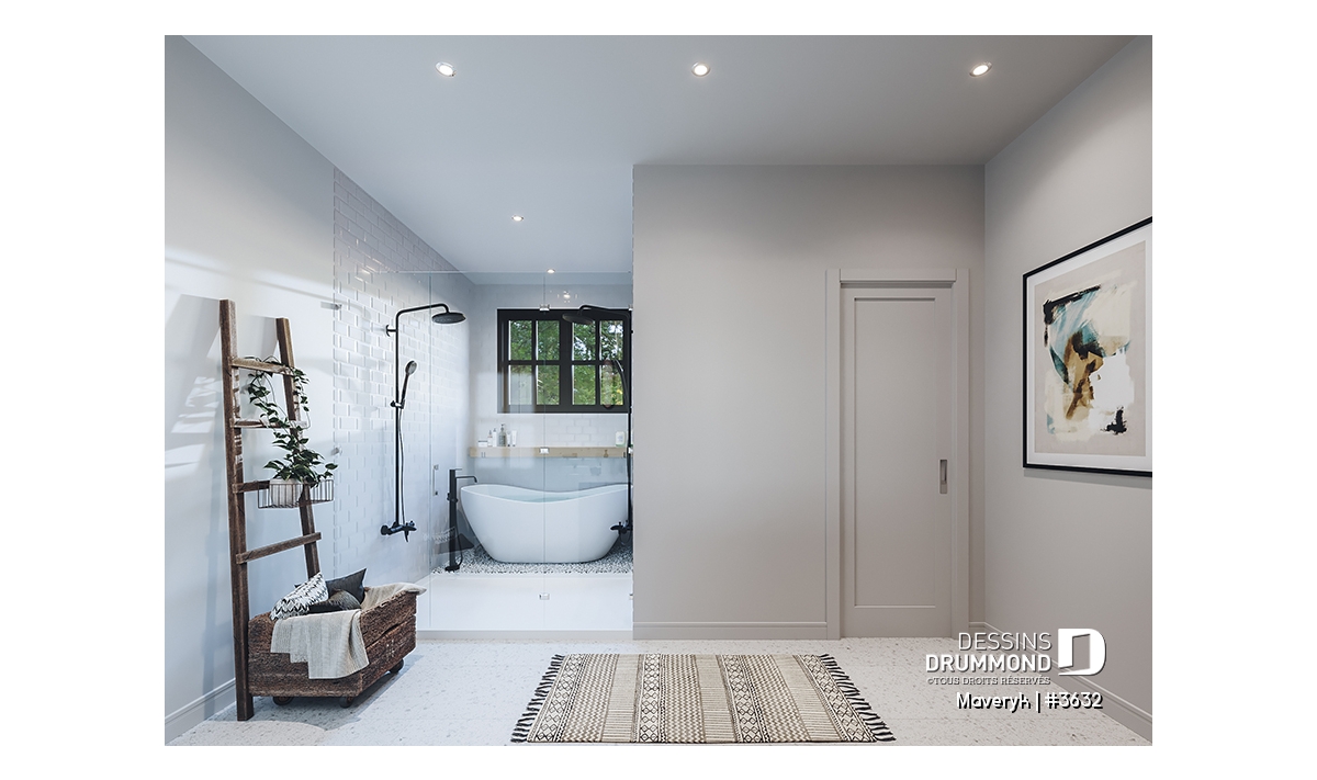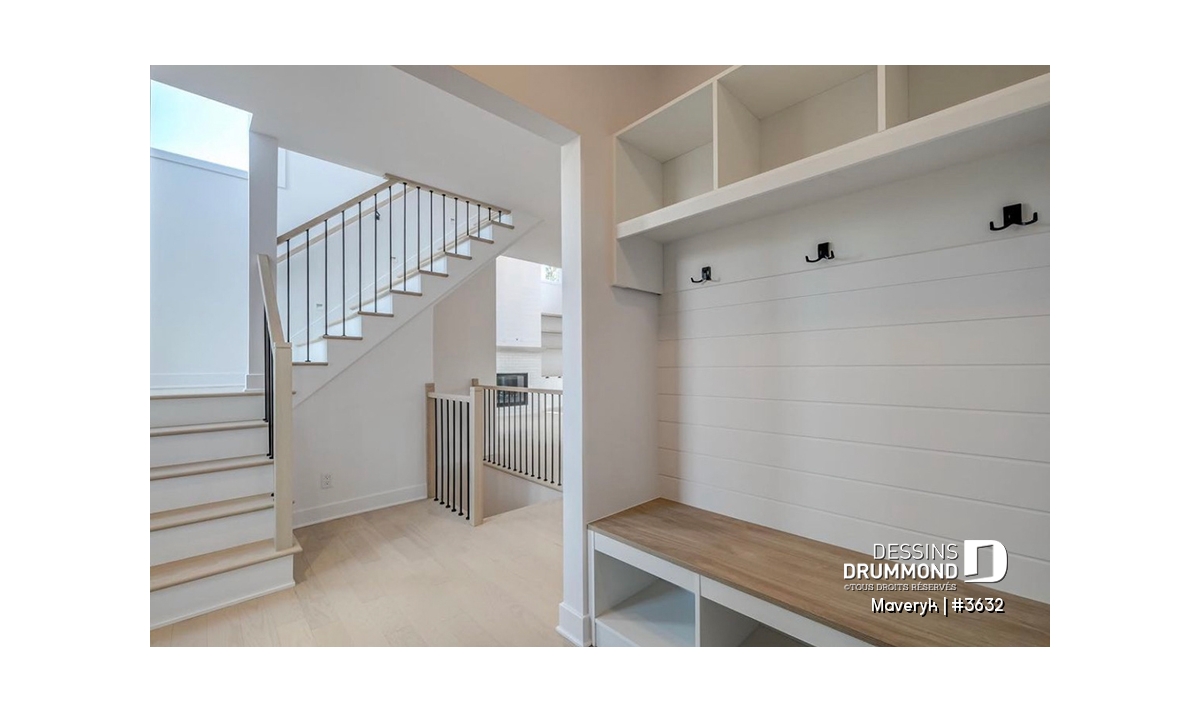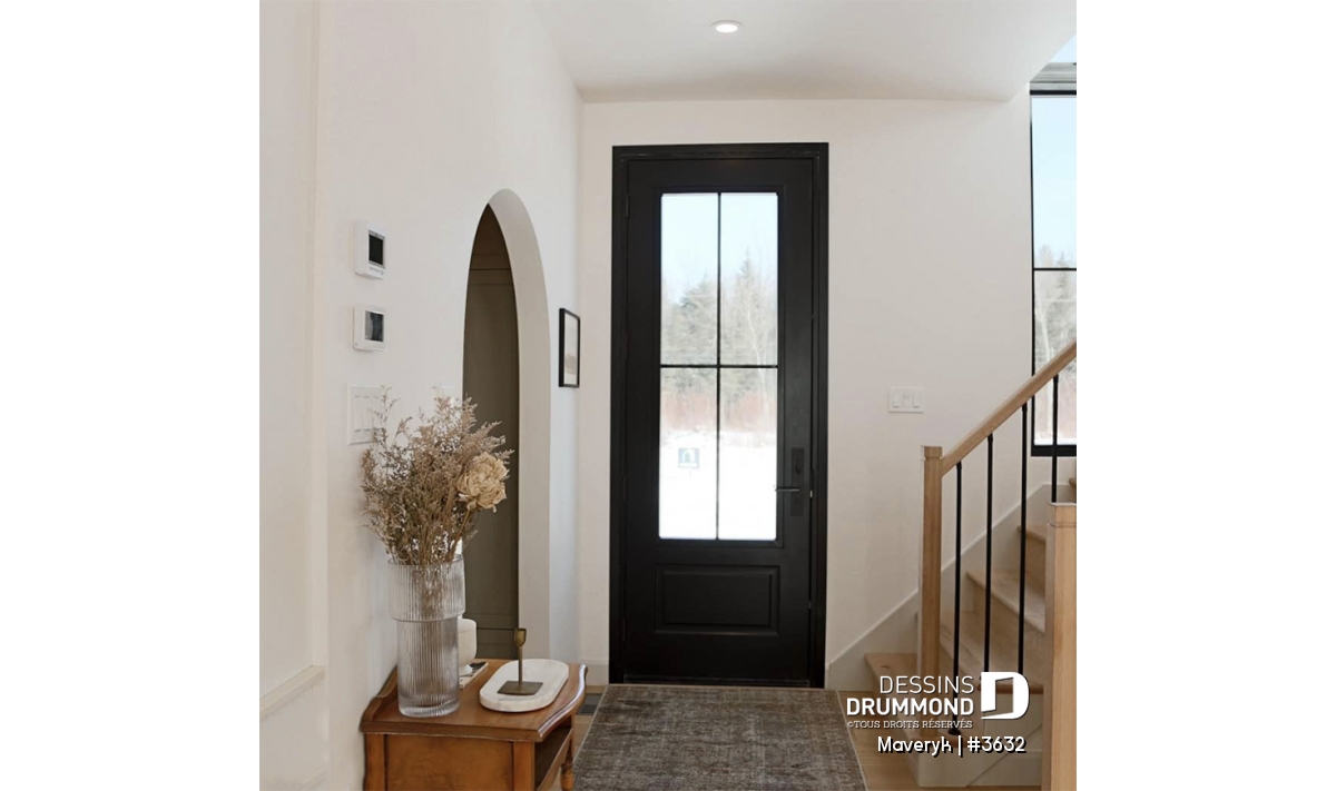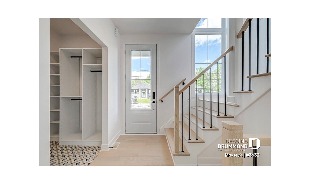 Foyer, Plafond à plus de 8', Suite des maîtres à l'étage, Terrasse abritée, Walk-in ch. maîtres, Banquette, Vestiaire, Tablettes, Aire ouverte, Porte(s) de grange, Garde-manger, Lavabo double, Bain dans la douche, Entrepreneur, Auto-Construction