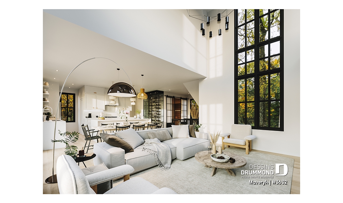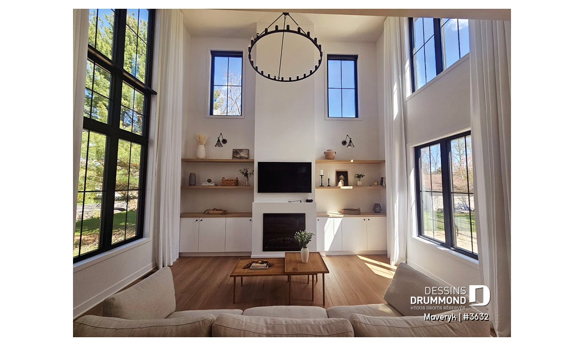 Tout le rez-de-chaussée a un plafond de 9' sauf au salon où le plafond est à plus de 18'.