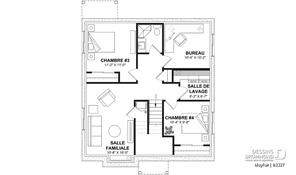 *Si vous souhaitez acheter le plan du sous-sol aménagé, veuillez sélectionner cette option dans le panier d'achat, dans la section "Sélectionner votre fondation". Si vous ne sélectionnez pas cette option, vous recevrez le sous-sol non fini, sans frais additionnel.