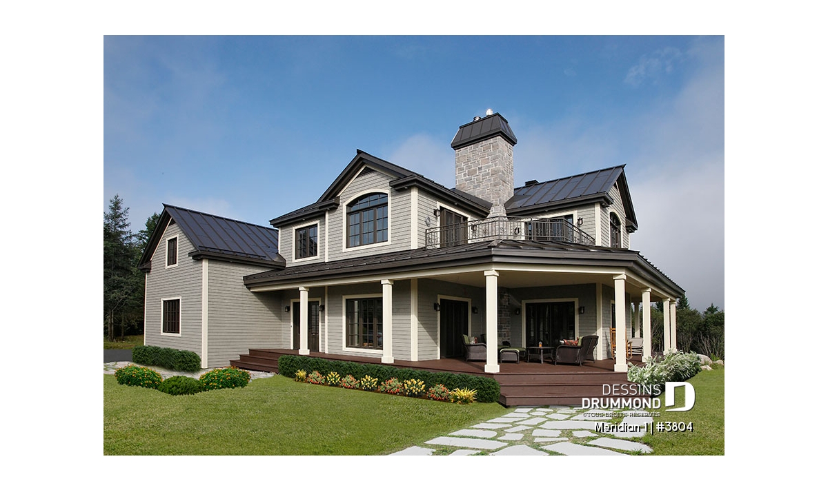 Conçu à partir du populaire modèle 2837 et dans le but de proposer un intérieur différent de ce dernier, ce modèle suggère un extérieur au déclin foncé et aux moulures blanche lui donnant passablement de caractère. On prend tout de même soin de conserver, pour celui-ci, les atouts du modèle d’origine comme le garage double aménagé de façon discrète, la cheminée à double conduits dont l’effet élancé contribue au cachet de la maison et ces terrasses abritée ou non que l’on retrouve au rez-de-chaussée et à l’étage.