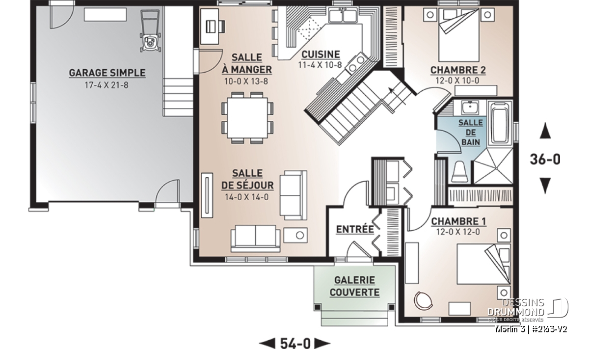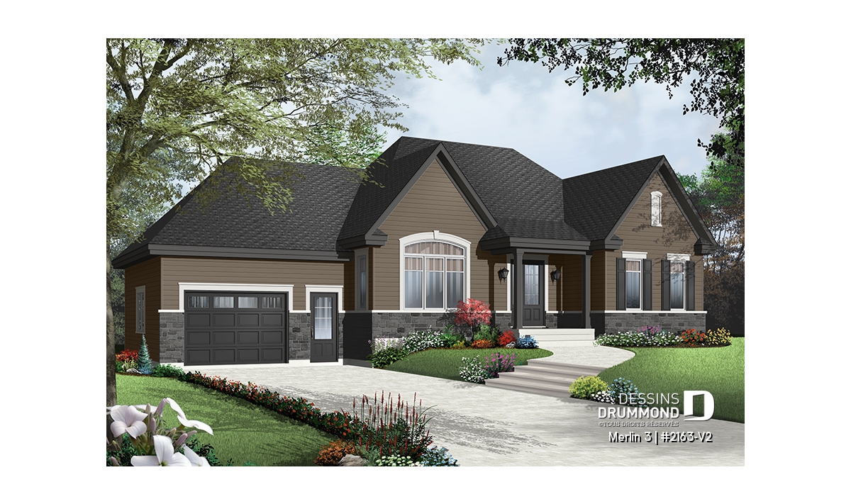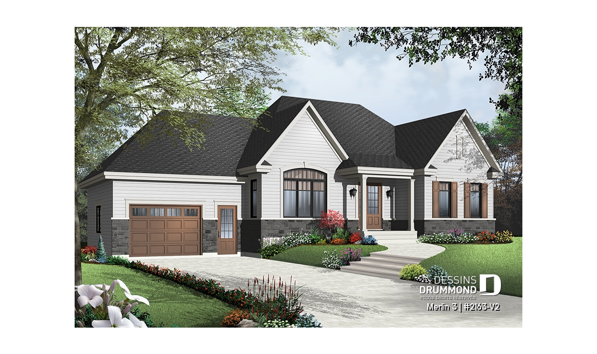En raison de l’engouement constaté chez notre clientèle pour le plan original 2163, nous avons donc cru bon d’offrir celui-ci avec un garage et surtout parce que seulement le plan similaire 3207 en proposait un.