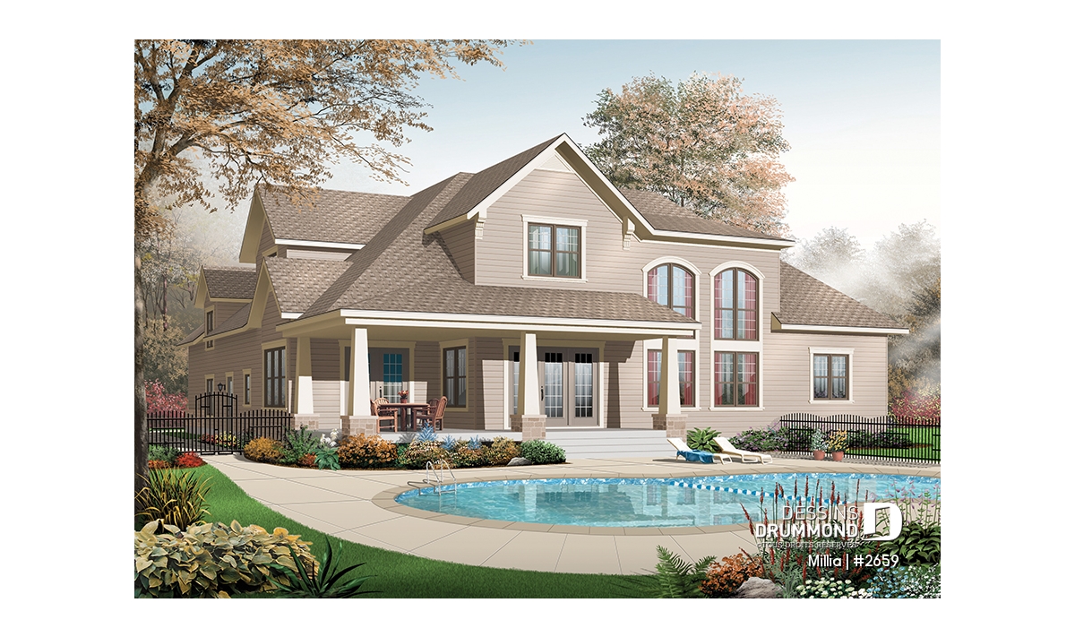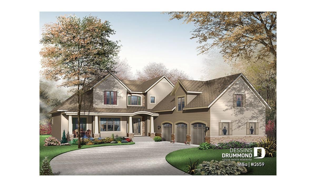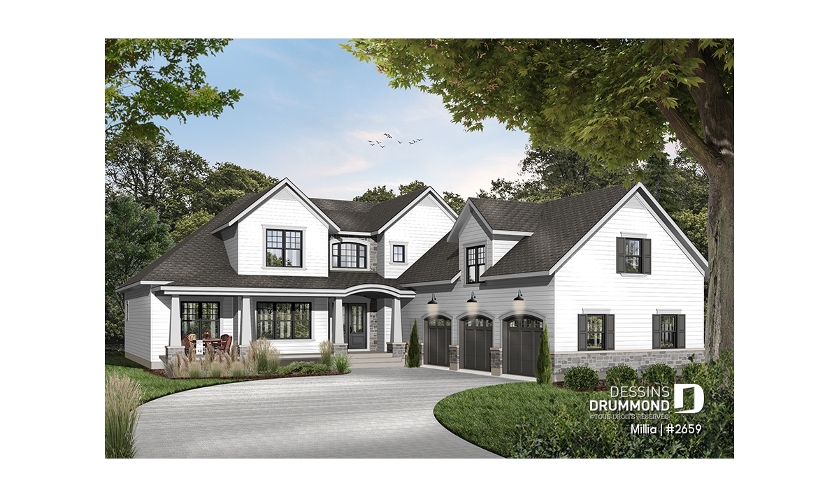 Ce modèle, conçu dans l’esprit Craftsman que l’on retrouve en abondance dans ce coin de pays, se veut le reflet de la pensée américaine d’abord par la présence d’un garage triple et de deux porches bien abrités à l’avant comme à l’arrière, et ensuite, par ce vaste espace boni situé au-dessus du garage triple et que chacun appréciera aménagé au gré de ses besoins personnels.