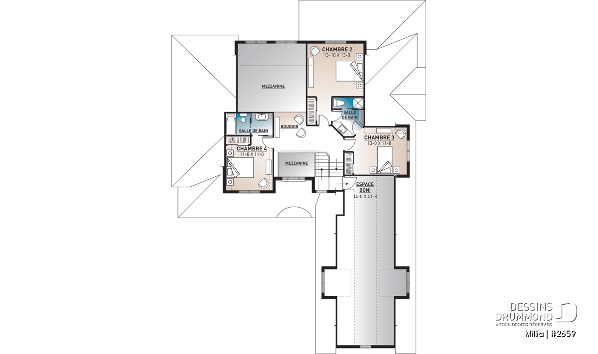 À l’étage, il en va d’un accès à ce superbe espace boni aménagé au-dessus du garage triple, d’un coin lecture en mezzanine, de deux salles de bain et de trois chambres dont une suite d’invités. À noter que chacune des chambres permet l’aménagement d’un lit double; une fois de plus, à la façon américaine de faire les choses.
