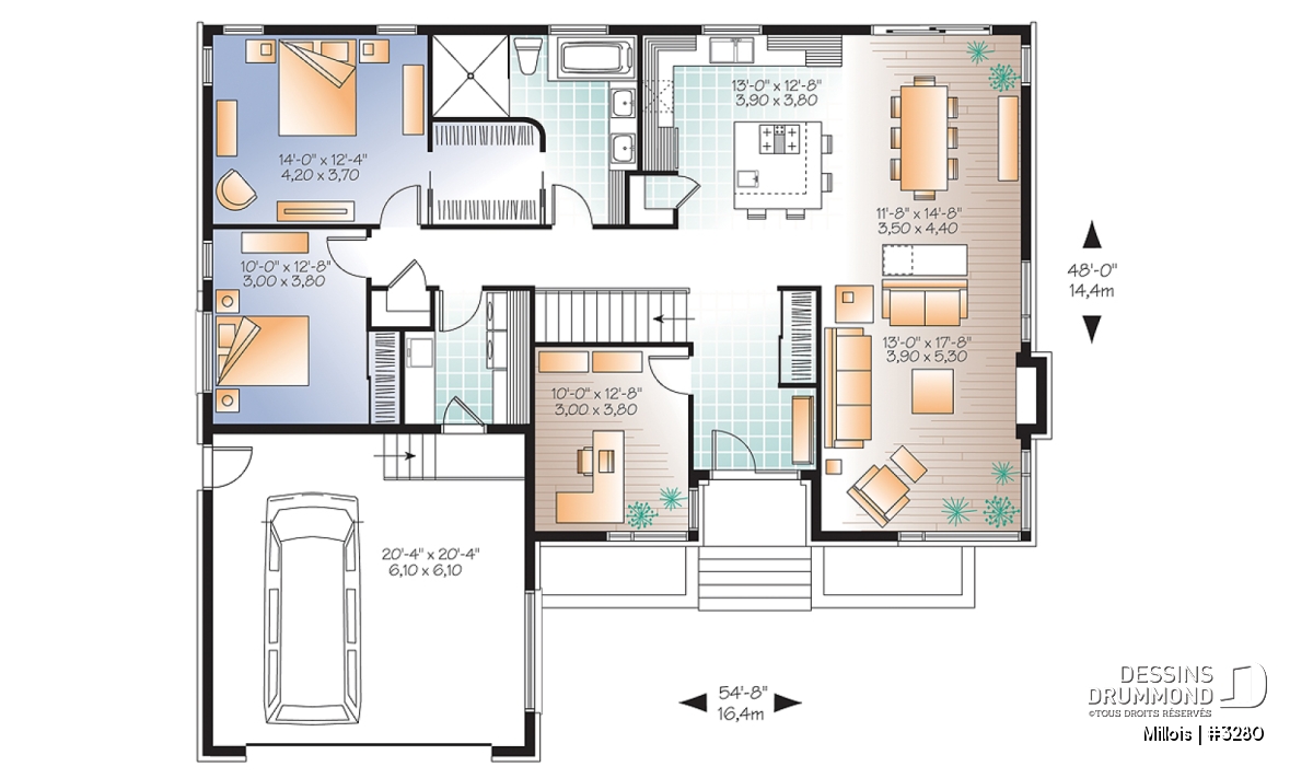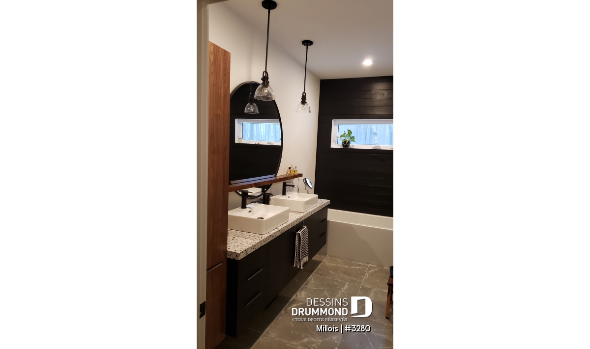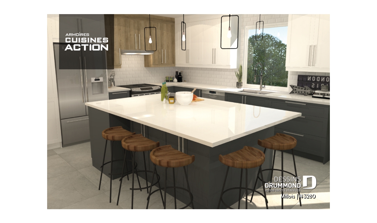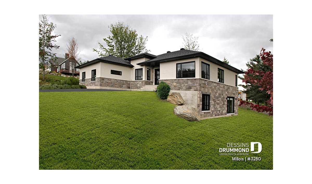 Conçu à partir du très populaire plain-pied 2270, celui-ci se veut une version contemporaine de ce plan d’origine avec, entre autres, plusieurs caractéristiques attribuables aux tendances et besoins actuels et le souci d’offrir un plan de plain-pied à la fois distinctif et fonctionnel.