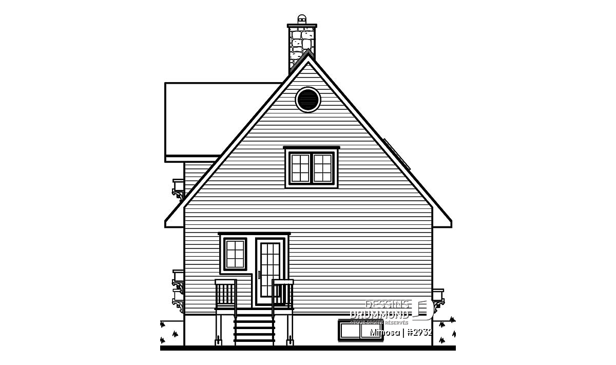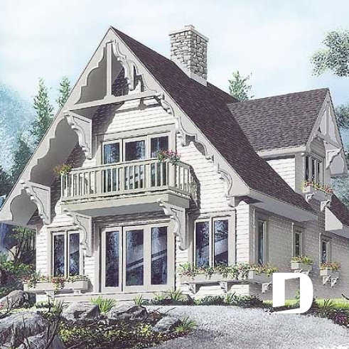 D’abord et certes par son allure extérieure sans équivoque; on est véritablement en présence d’un chalet. La fenestration y est tout comme les motifs helvétiques et les boîtes à fleurs ainsi, bien entendu, que le balcon tout à fait dans le ton en façade. Ensuite, et fort probablement, pour son aménagement intérieur prévoyant une chambre au rez-de-chaussée, un espace buanderie, une salle de douche et un foyer de pierre bien centralisé dans le secteur activités. À l’étage, l’aménagement de deux belles chambres, dont une genre suite d’invités, demeure, avec une salle de bain complète donnant dans la lucarne latérale, un attribut tout aussi considérable à la popularité du modèle. En visitant notre site web dessinsdrummond.com, vous serez en mesure d’apprécier un autre modèle similaire à celui-ci, histoire de vous donner un peu de choix et de voir plein d’autres maisons genre chalets.