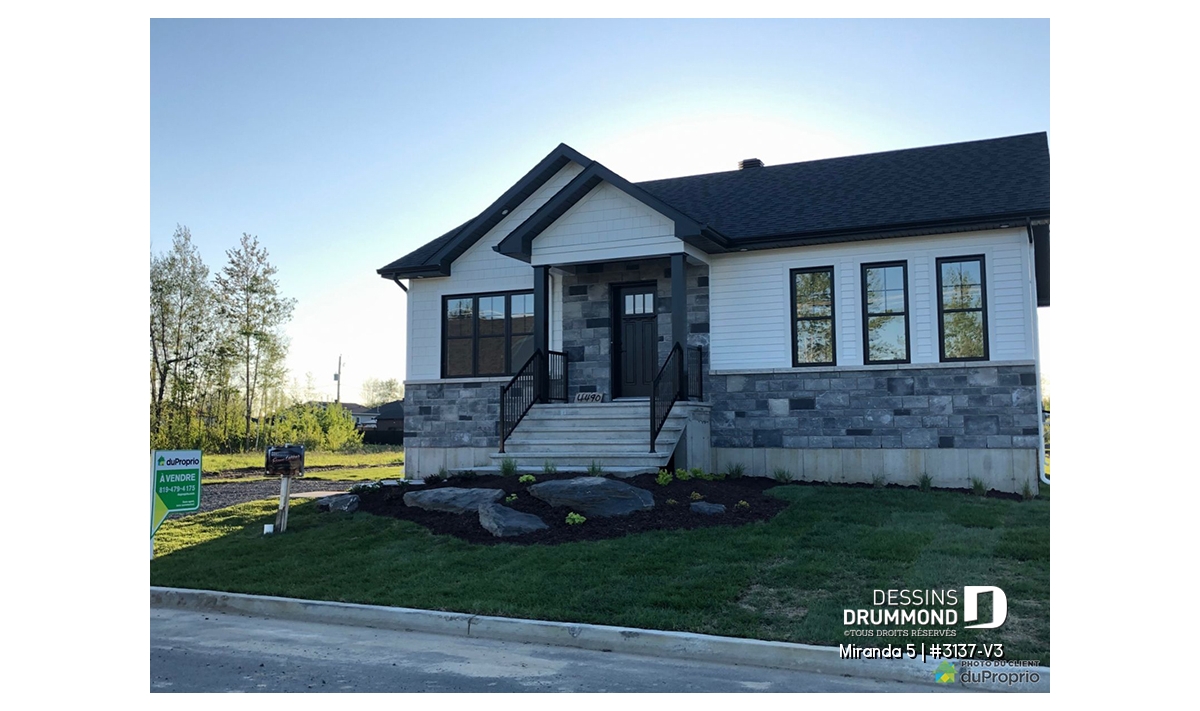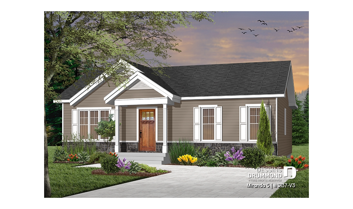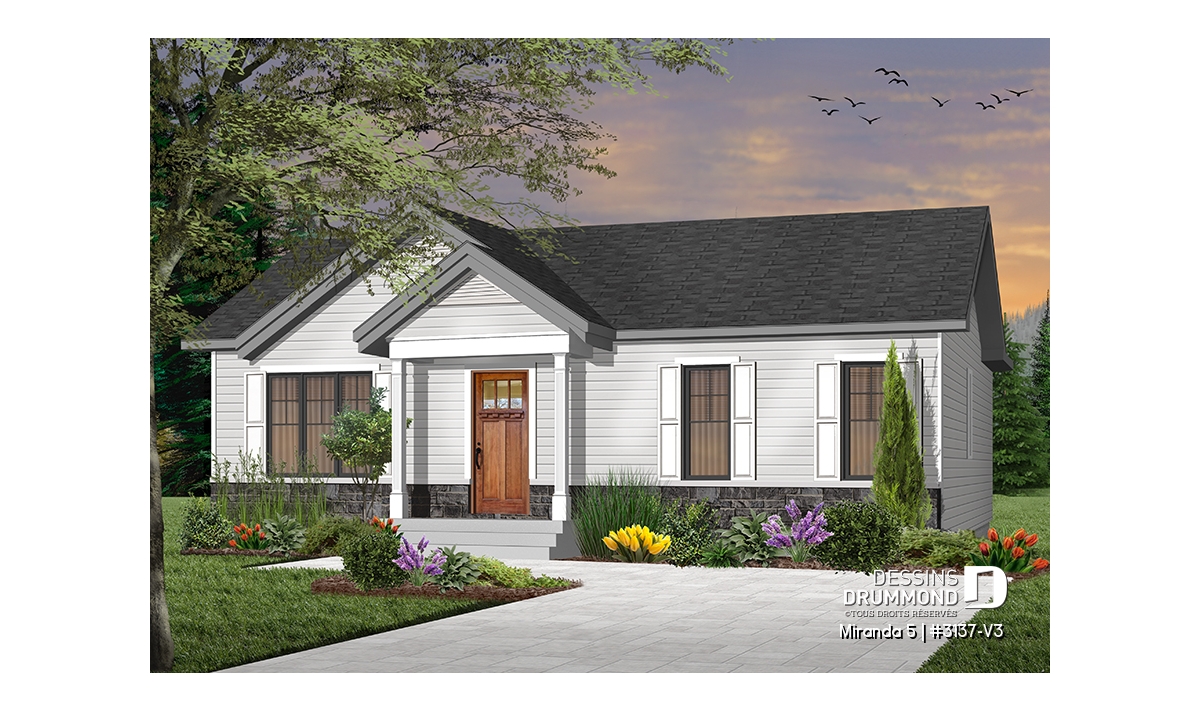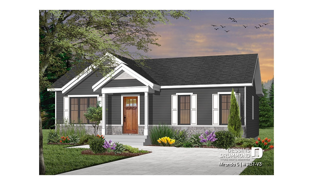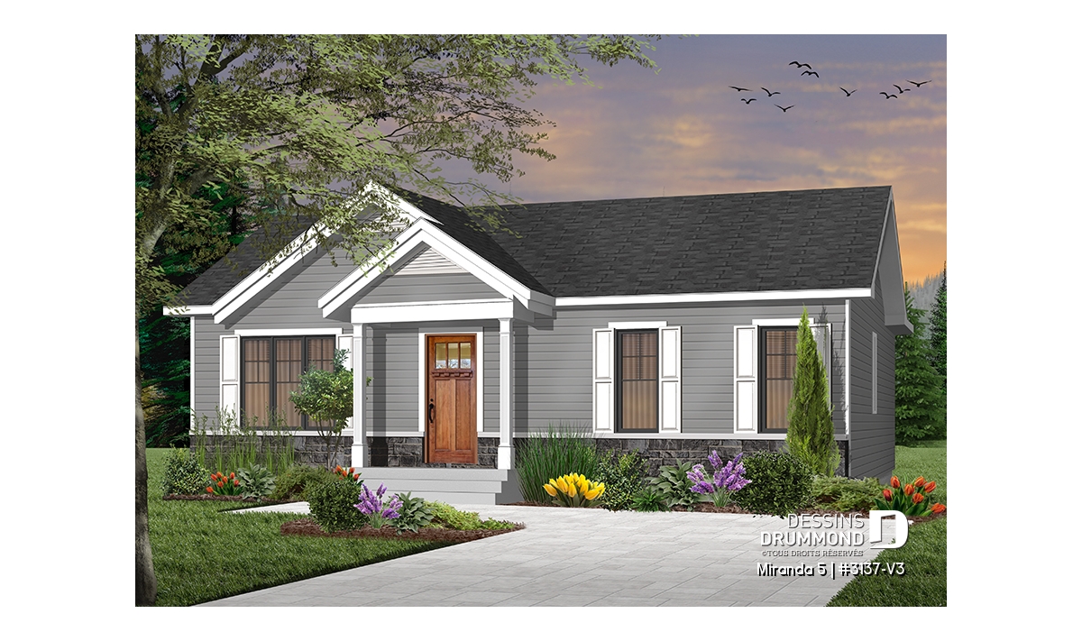 Le plan de maison de plain-pied no. 3137-V3, aussi nommé Miranda 5, plaira assurément de par son coût abordable, son allure moderne rustique et ses 3 chambres à coucher au même niveau. Trois éléments populaires et recherchés par les jeunes familles. De plus ce plan fait partis d’une série de 5 plans proposant différents aménagements intérieurs, avec ou sans garage. Vous n’avez qu’à taper « 3137 » dans la case en haut à droite de notre nouveau site internet afin de voir la collection complète!
