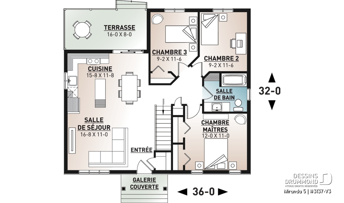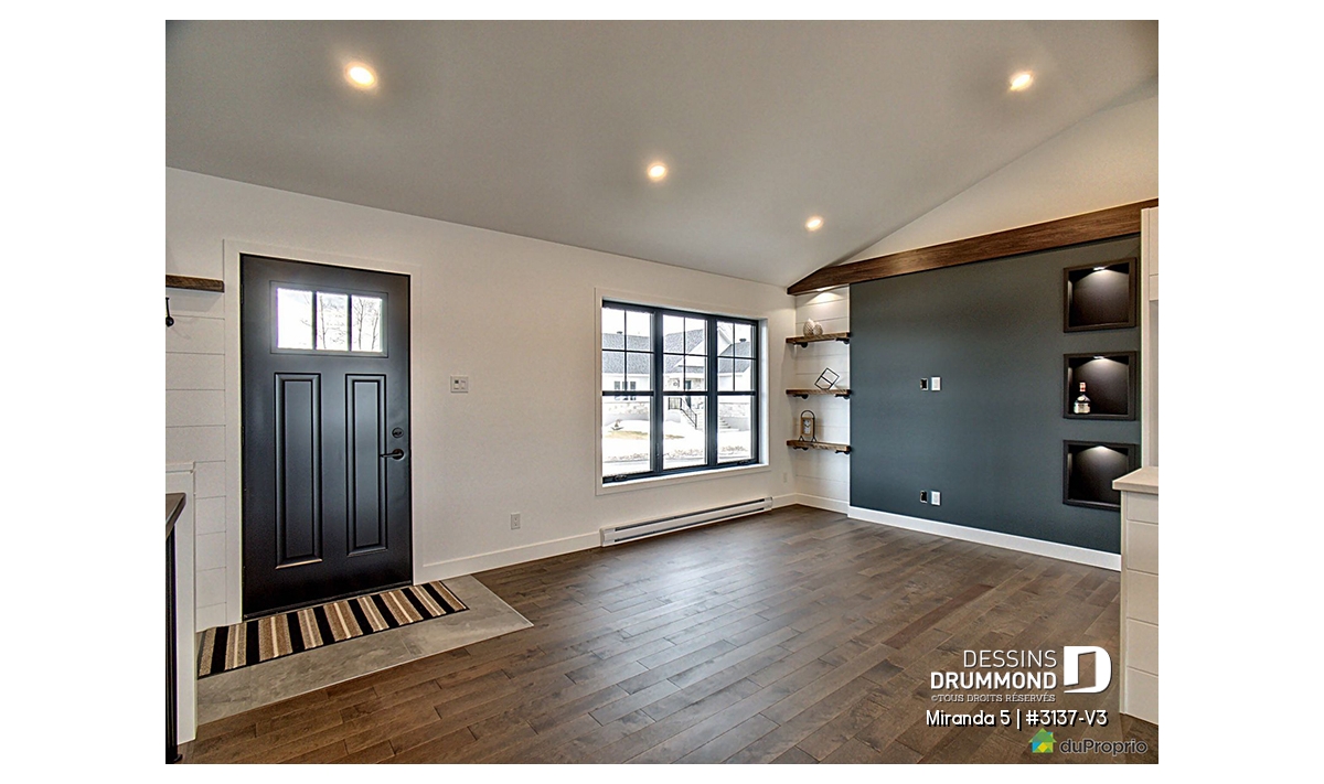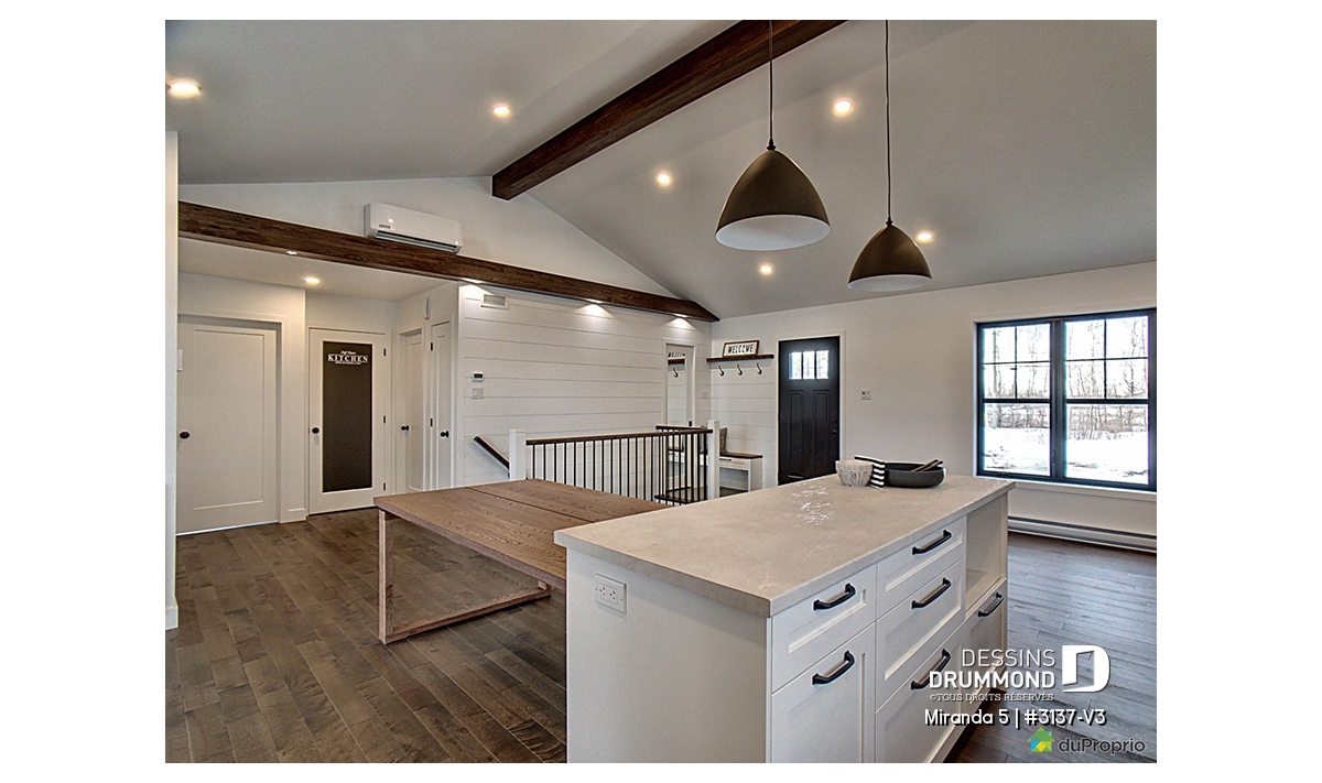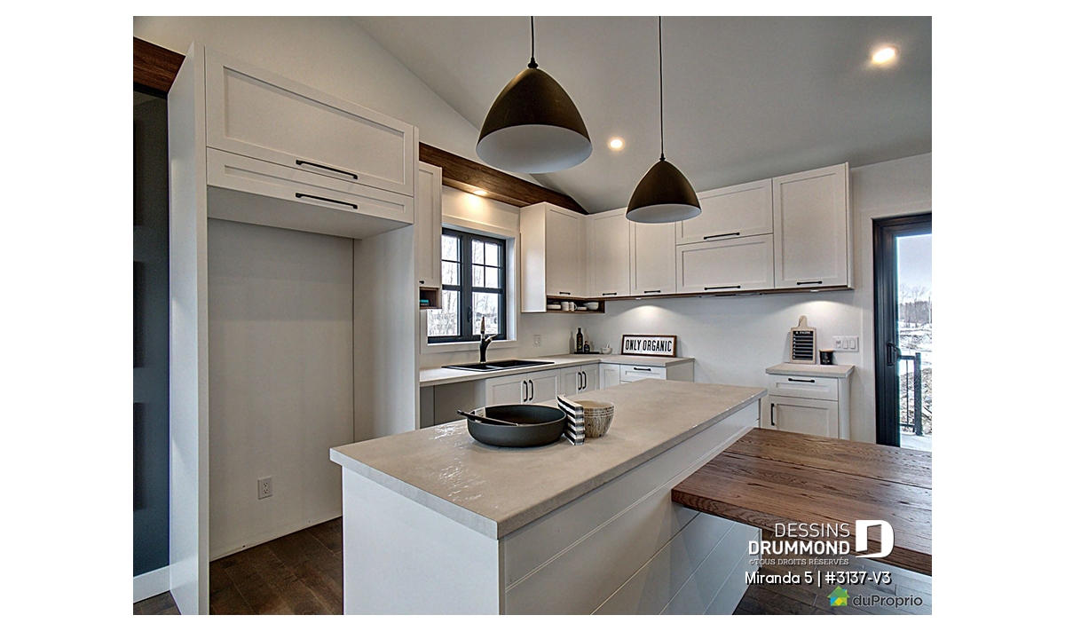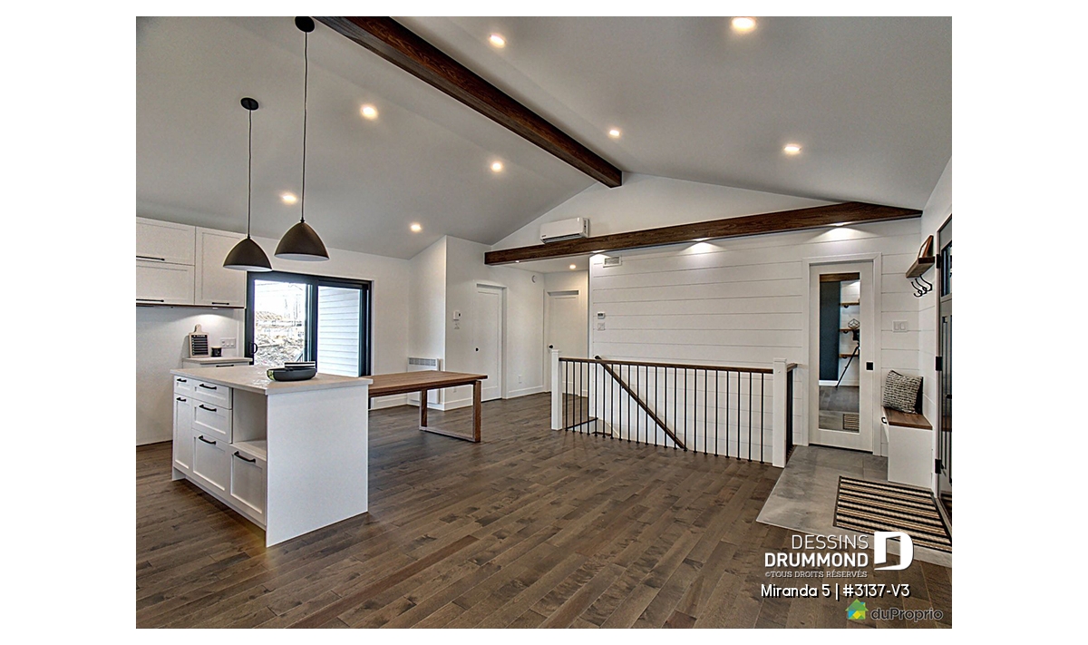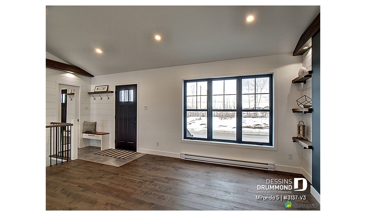 Le plan de maison de plain-pied no. 3137-V3, aussi nommé Miranda 5, plaira assurément de par son coût abordable, son allure moderne rustique et ses 3 chambres à coucher au même niveau. Trois éléments populaires et recherchés par les jeunes familles. De plus ce plan fait partis d’une série de 5 plans proposant différents aménagements intérieurs, avec ou sans garage. Vous n’avez qu’à taper « 3137 » dans la case en haut à droite de notre nouveau site internet afin de voir la collection complète!
