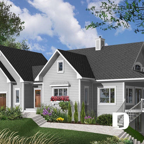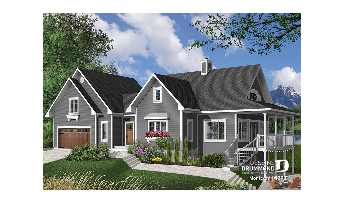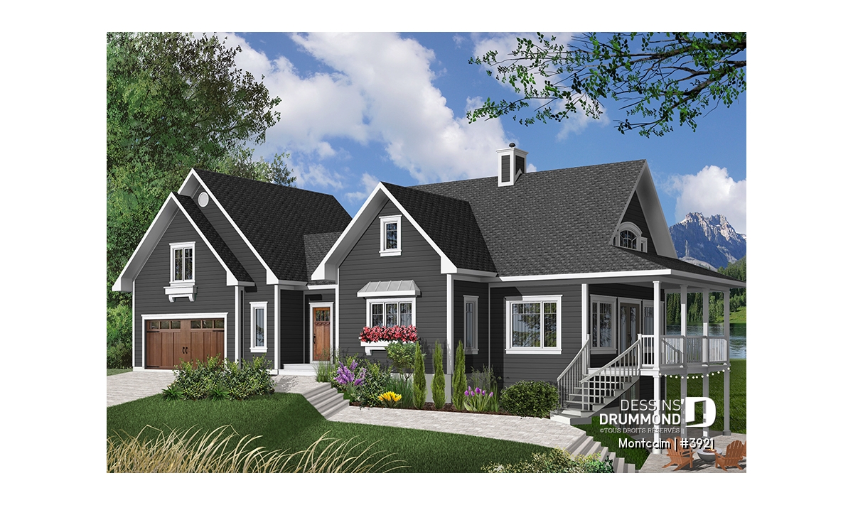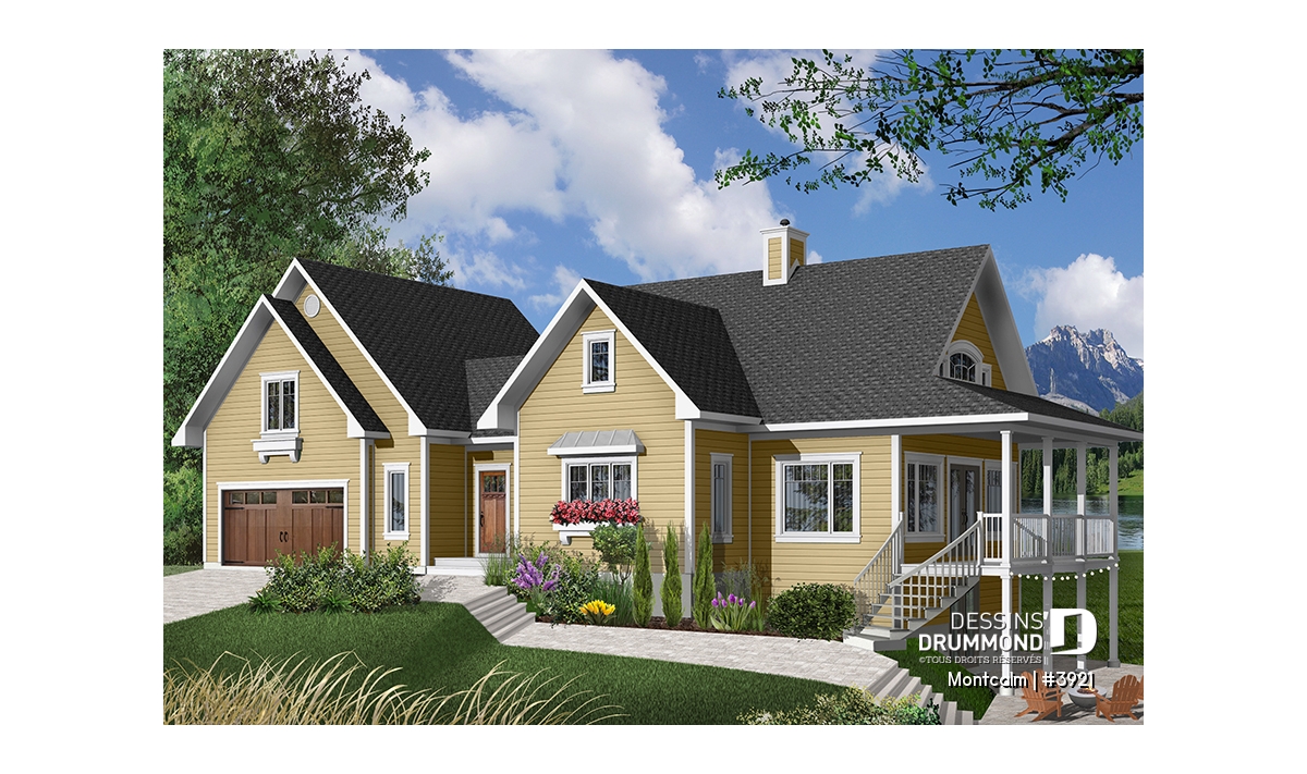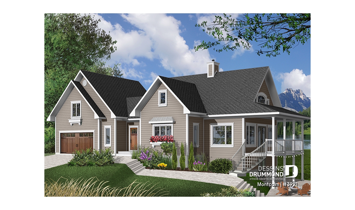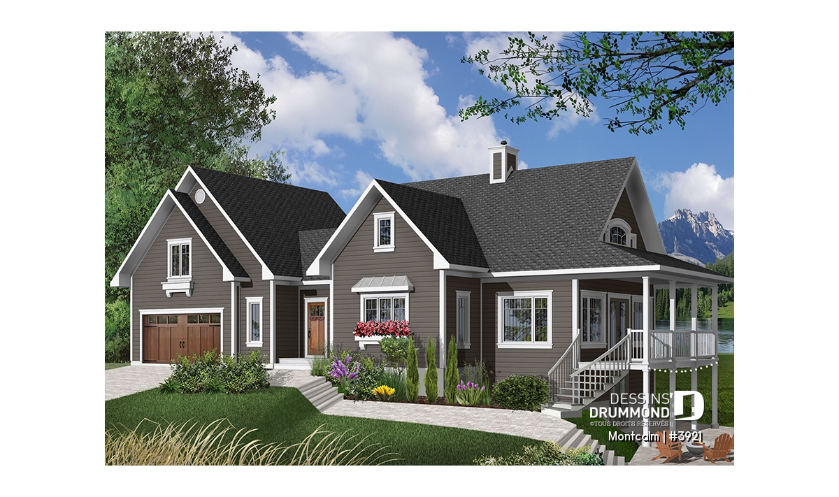 Superbe plan de maison genre chalet avec 3 à 4 chambres et garage double.