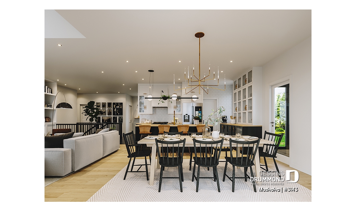 Sous-sol aménageable - Plain-pied Farmhouse 1 à 4 chambres, bureau, cuisine avec garde-manger, finition sous-sol optionnelle ($) - Muskoka