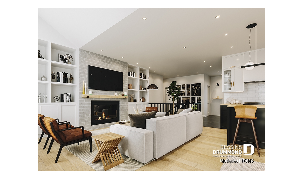 Sous-sol aménagé (Optionel $) - Plain-pied Farmhouse 1 à 4 chambres, bureau, cuisine avec garde-manger, finition sous-sol optionnelle ($) - Muskoka