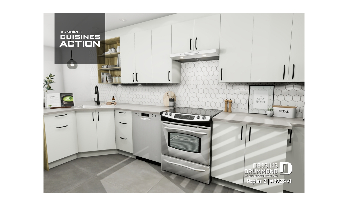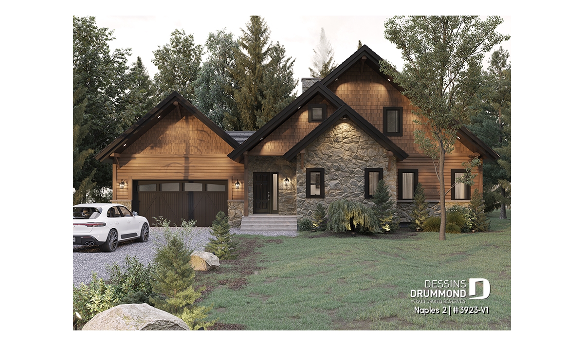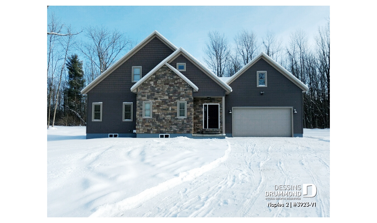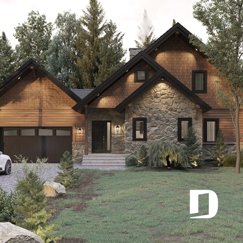 Heureux mariage entre le plan d’origine 3923 et celui plus d’envergure qu’est le 3925, ce modèle version propose, avant tout, un garage double avec espace rangement boni significatif au-dessus ainsi qu’un intérieur modifié pour l’addition de quelques utilités. Entrons donc sans plus tarder !