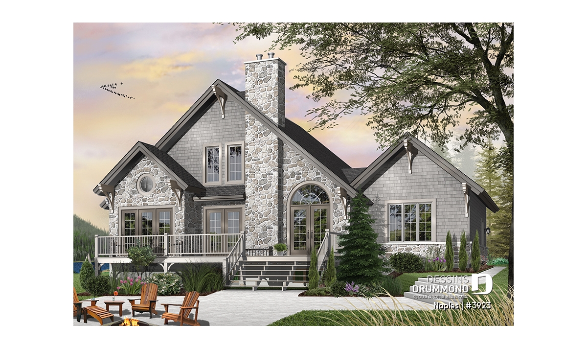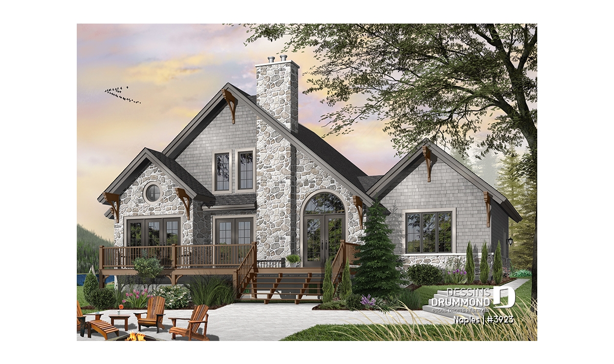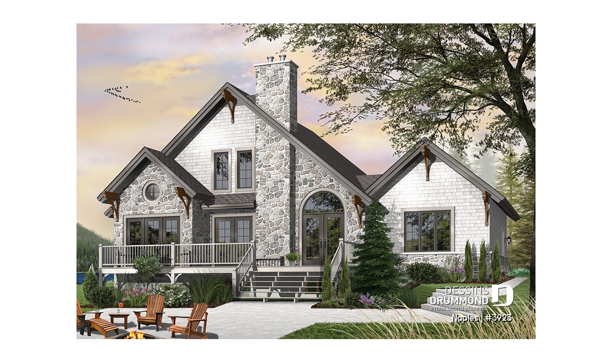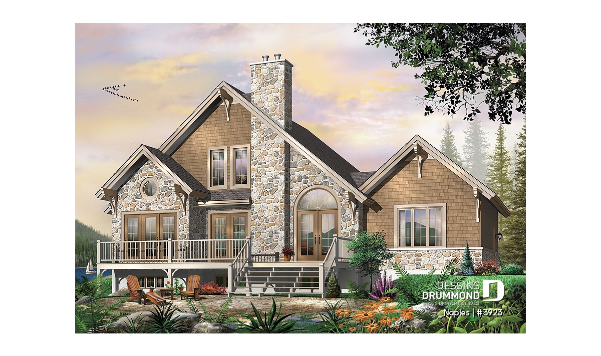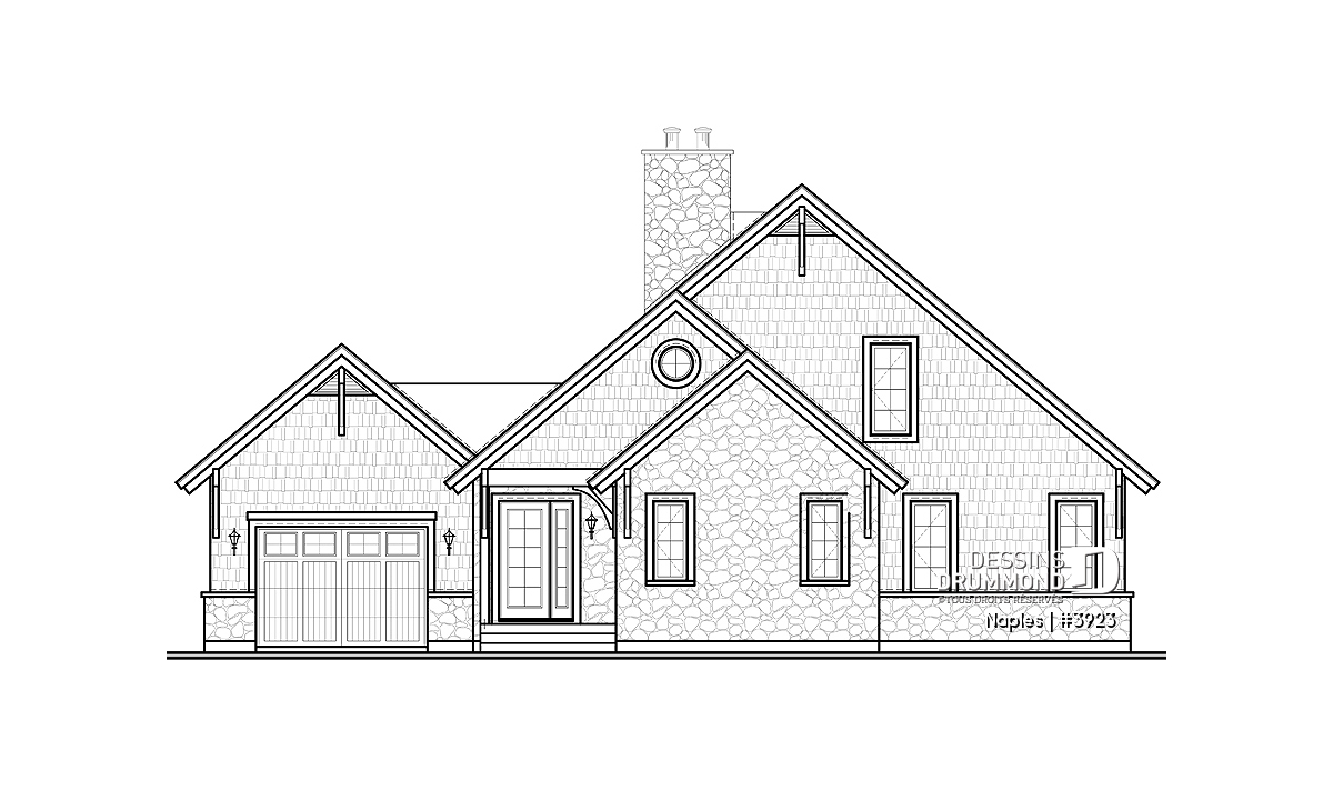 Nous avons aussi cru bon de suggérer un modèle encore plus logeable, aménagé sur trois étages et avec garage double que vous pouvez d’ailleurs apprécier, toujours sur notre site dessins drummond.com, sous le numéro 3925.