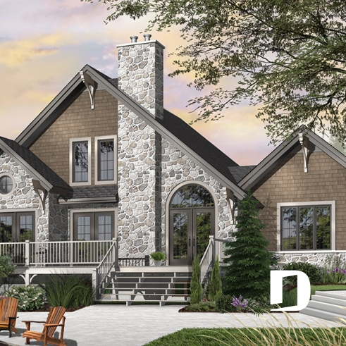 Plan de chalet rustique 3 chambres, garage, suite des parents au rez-de-chaussée, mezzanine