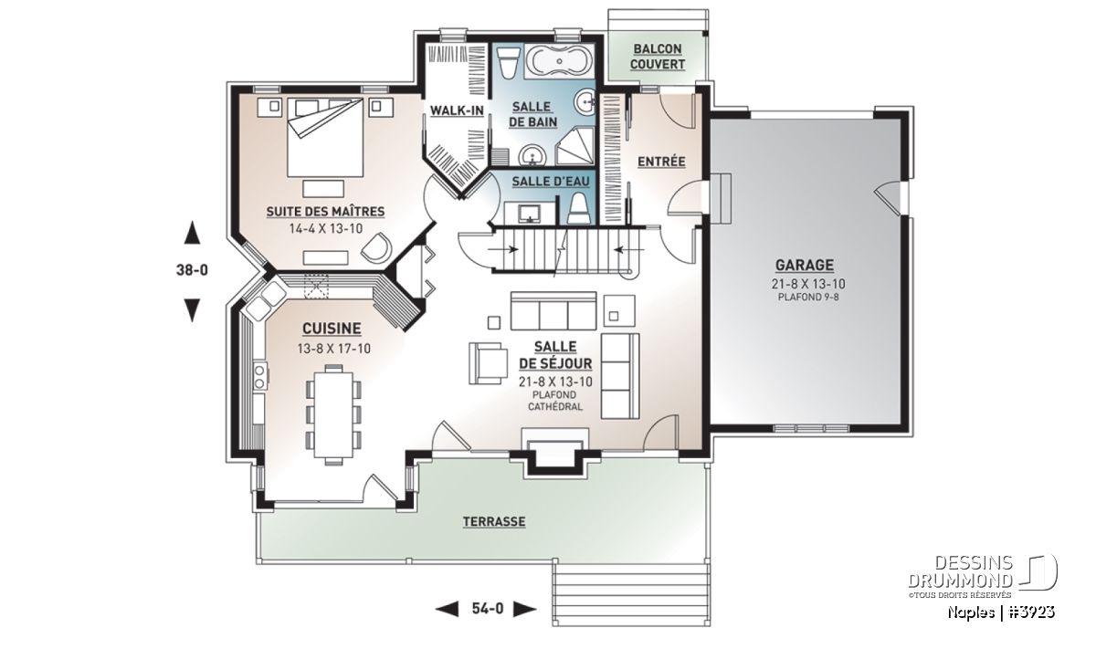 | Largeur | 54'0" | Profondeur | 38'0" |