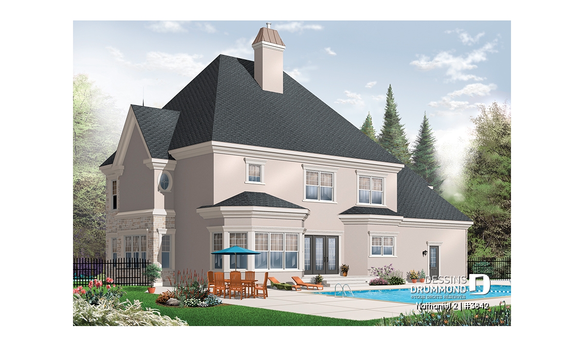 D’abord, au rez-de-chaussée, on peut apprécier un plafond à 10 pieds de hauteur sur tout le plancher, un escalier balancé bien dégagé, un espace bureau des plus enviables, une vaste salle à manger, une salle de séjour plus réservée à l’avant et une grande salle familiale ouverte sur l’arrière et sur le secteur activités. La dînette, pour sa part, est agrémentée d’un foyer et de triple portes jardin en plus de côtoyer une cuisine fort logeable avec îlot central stratégique. À cela s’ajoute une buanderie indépendante du coin toilette et un garage triple de plus en plus recherché sur ce genre de maison.