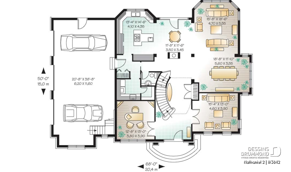 Foyer, Mezzanine, Plafond à plus de 8', Accès au sous-sol du garage, Salle de lavage au rez-de-chaussée, Bureau / Salle étude, Vue paronamique, Garage latéral, Garde-manger, Ilôt, Aire ouverte, Espace boni aménageable, Suite des maîtres à l'étage, Suite d'invités, Plafond en pente, Walk-in ch. maîtres, Balcon à l'étage, Garage spacieux, Bain et douche séparés, Lavabo double, Dinette / Coin déjeuner, Salle à manger formel