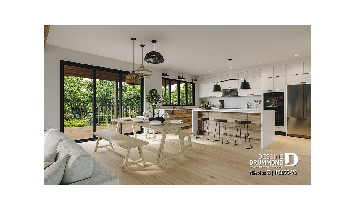 Aire ouverte, Salle de lavage au rez-de-chaussée, Bureau / Salle étude, Chute à linge, Vue paronamique, Foyer, Garde-manger, Ilôt, Mezzanine, Plafond à plus de 8', Suite des maîtres à l'étage, Terrasse abritée, Vestiaire, Entrée ouverte sur 2 étages, Walk-in double ch. maîtres, Bain et douche séparés