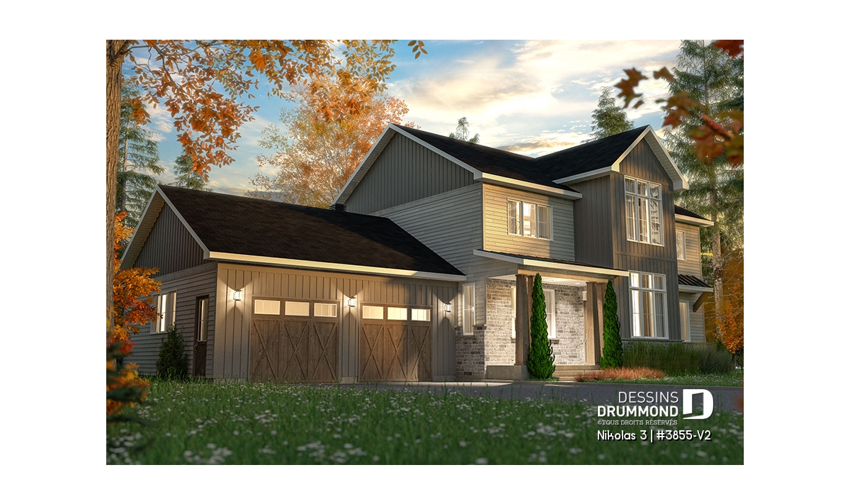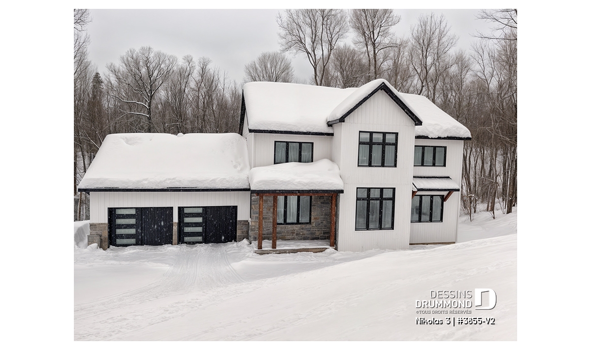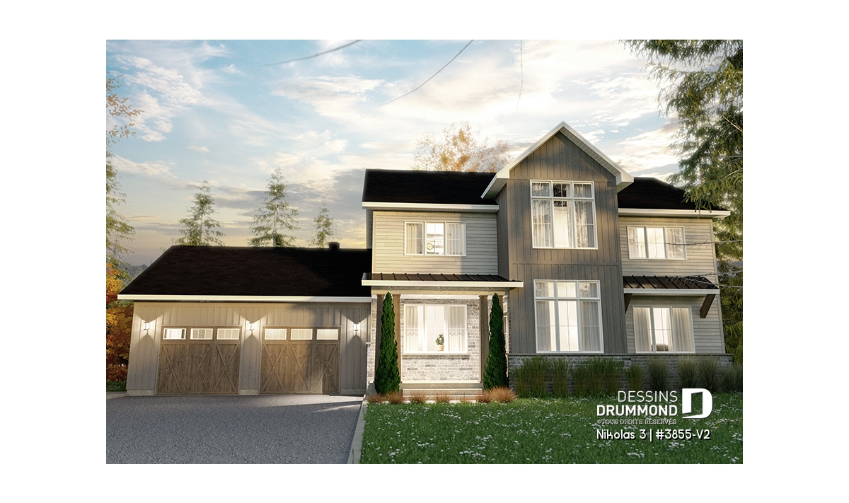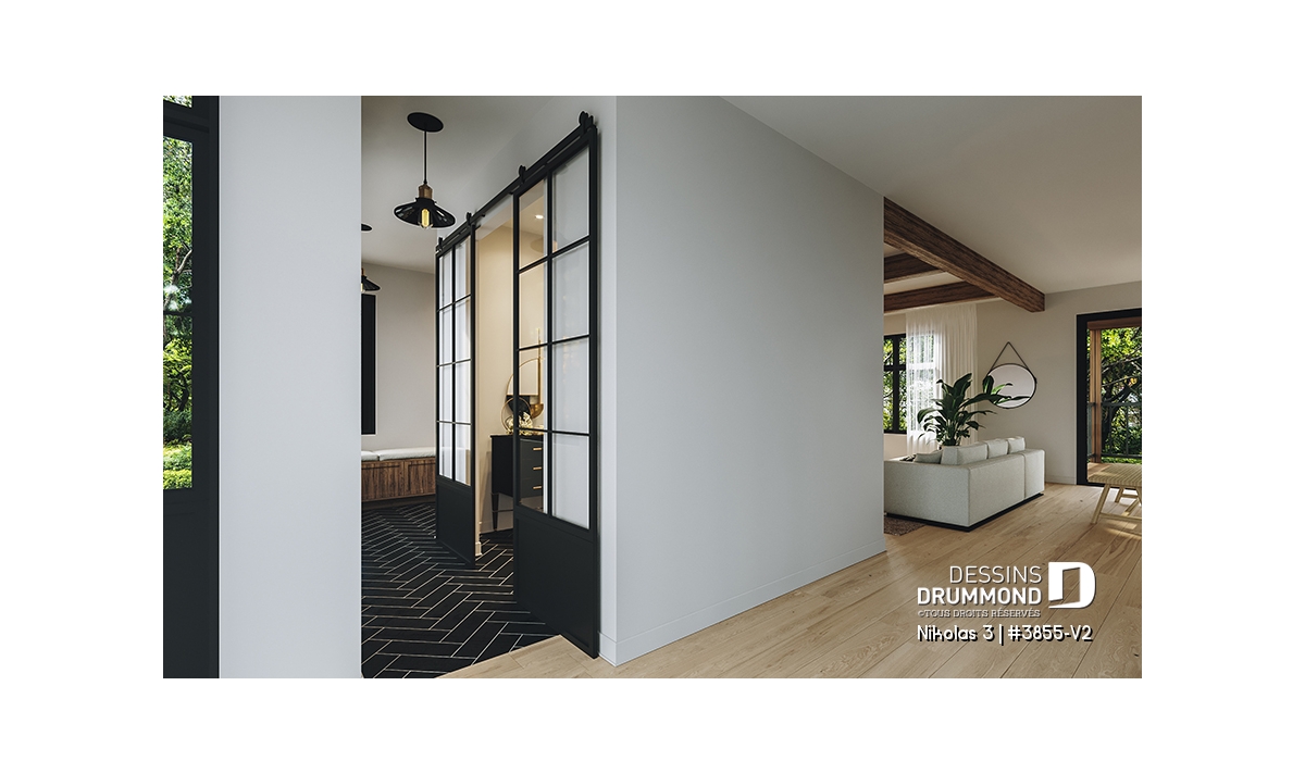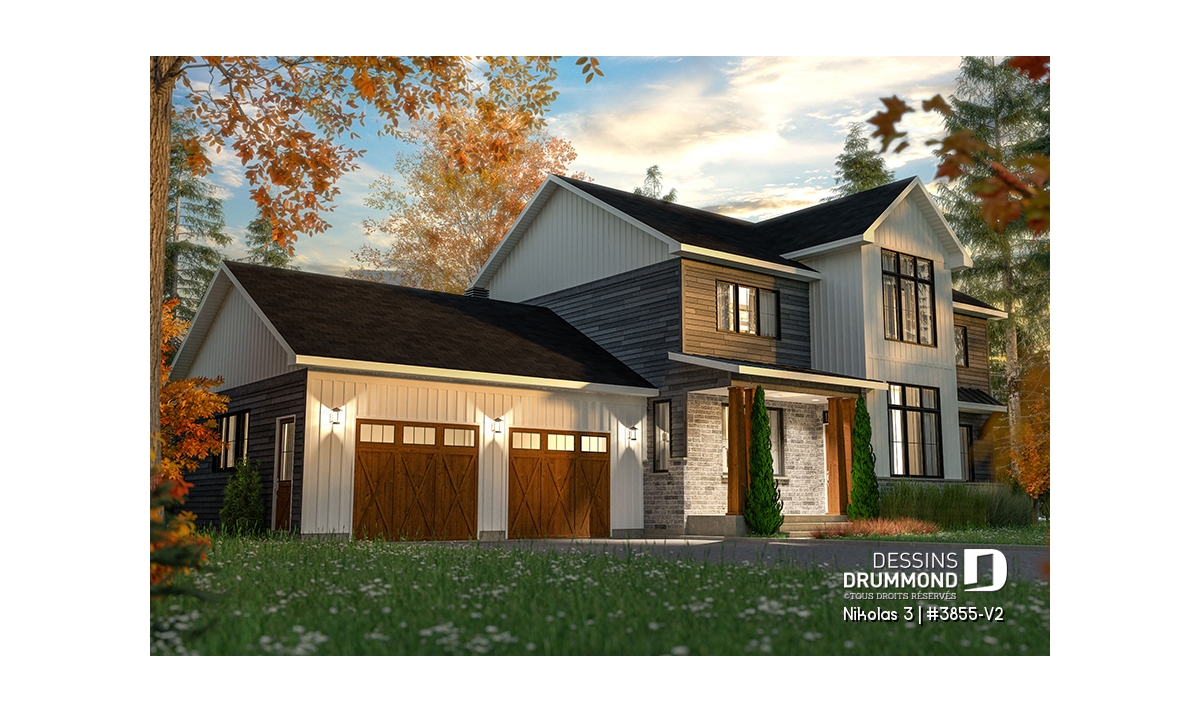 Superbe plan de maison contemporain et champêtre à la fois.