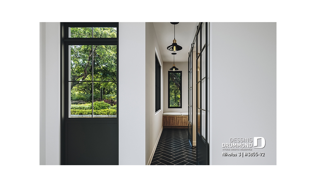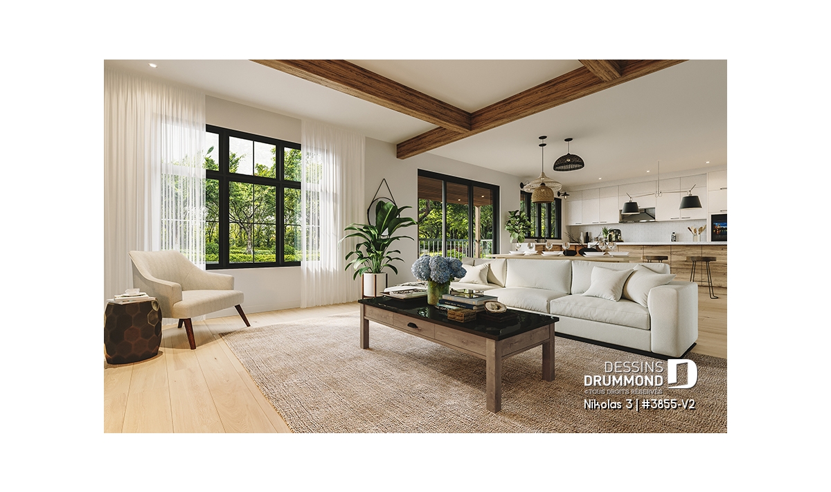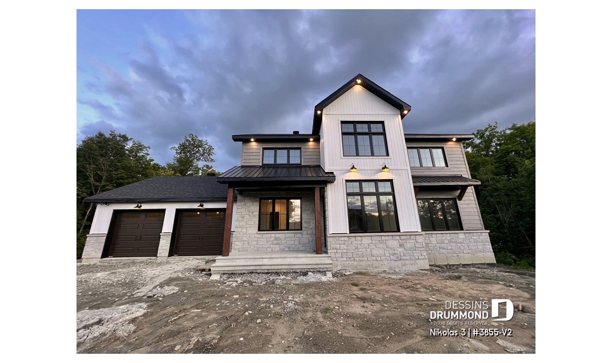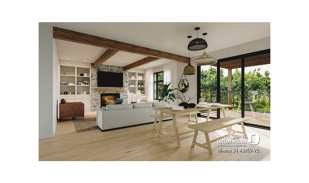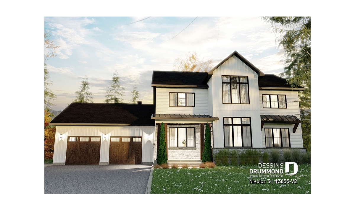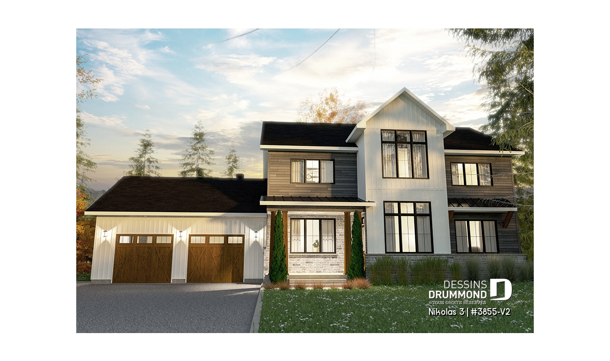 Superbe plan de maison contemporain et champêtre à la fois.