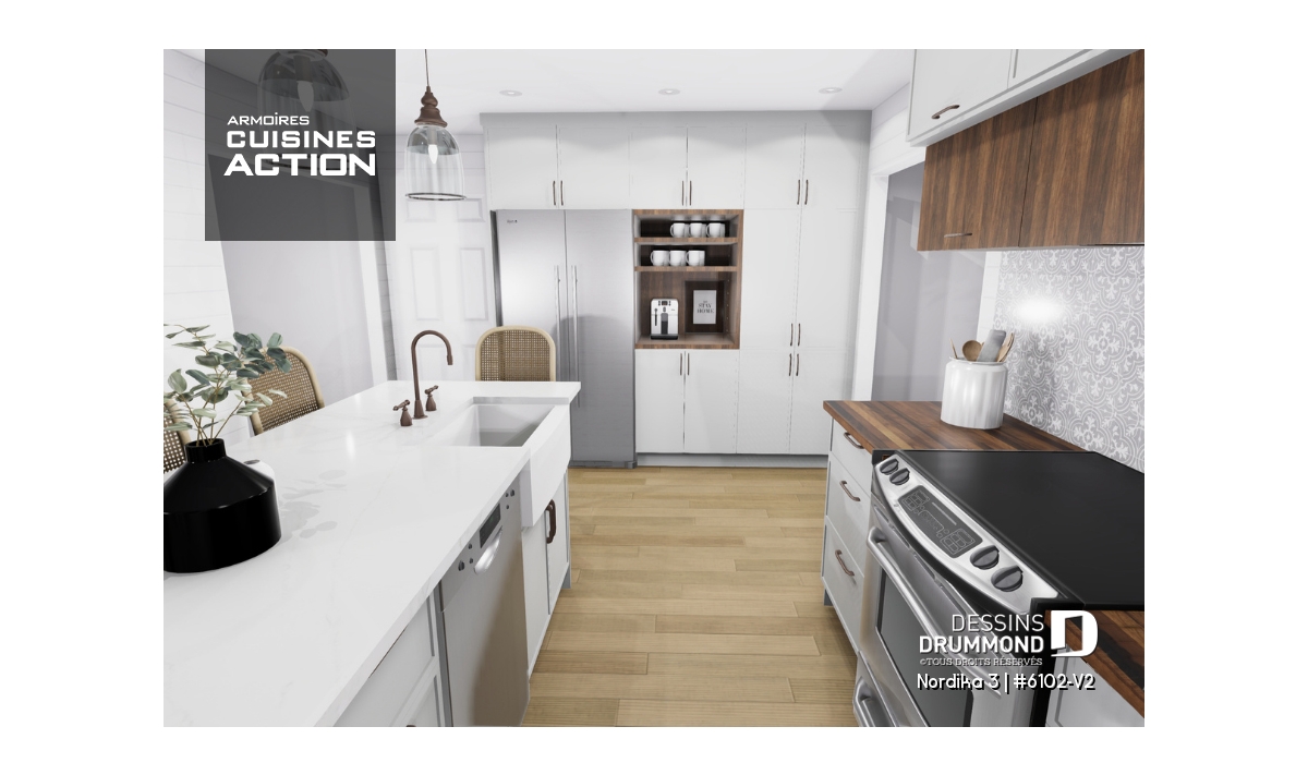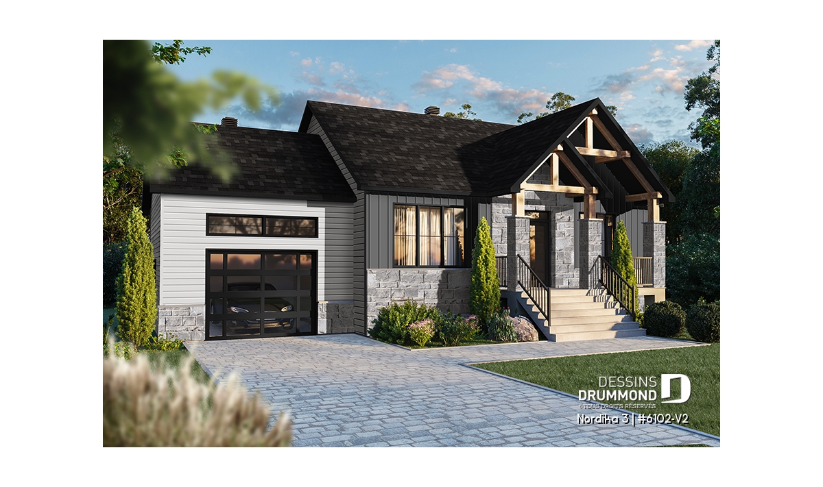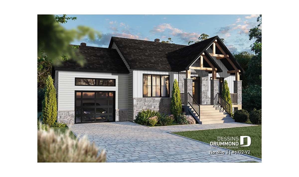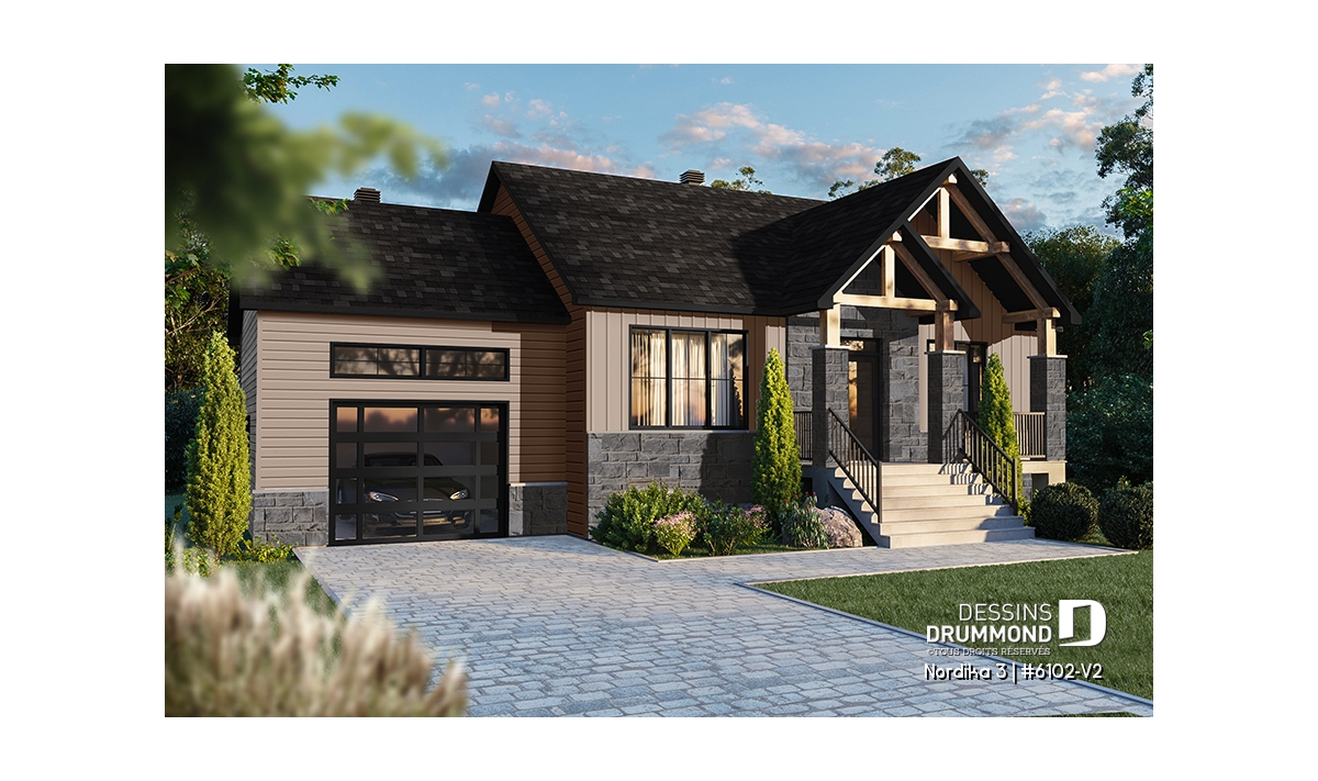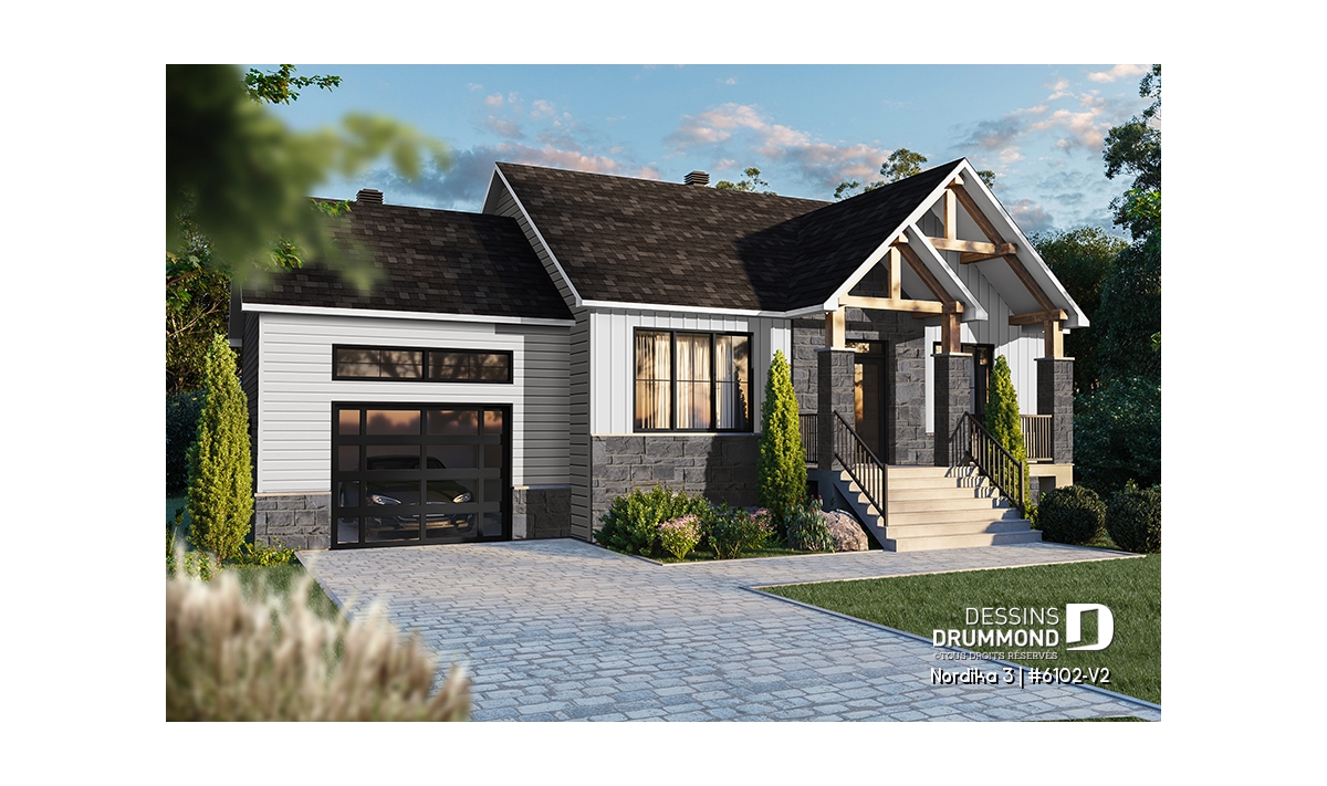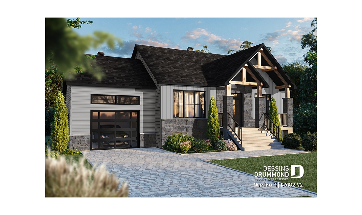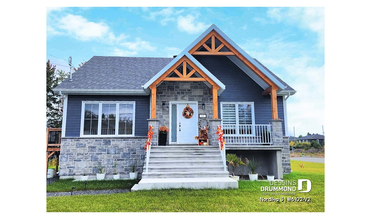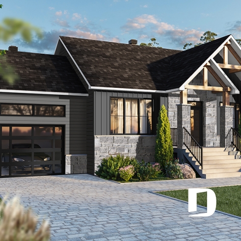 Il y a tellement de choses à dire sur cette superbe maison de style rustique/ranch. Notre plan 6102-V2 (Nordika 3) est tout simplement une maison d’une taille idéale avec des commodités surprenantes. Par exemple, vous êtes immédiatement accueillis avec une jolie garde-robe walk-in à l’entrée principale ainsi que suffisamment d'espace pour vous asseoir et enlever vos bottes, ou simplement déposer quelques courses ou les fournitures scolaires des enfants. Il y a suffisamment d’espace pour bouger si plusieurs personnes entrent en même temps. Une commodité non-négligeable!