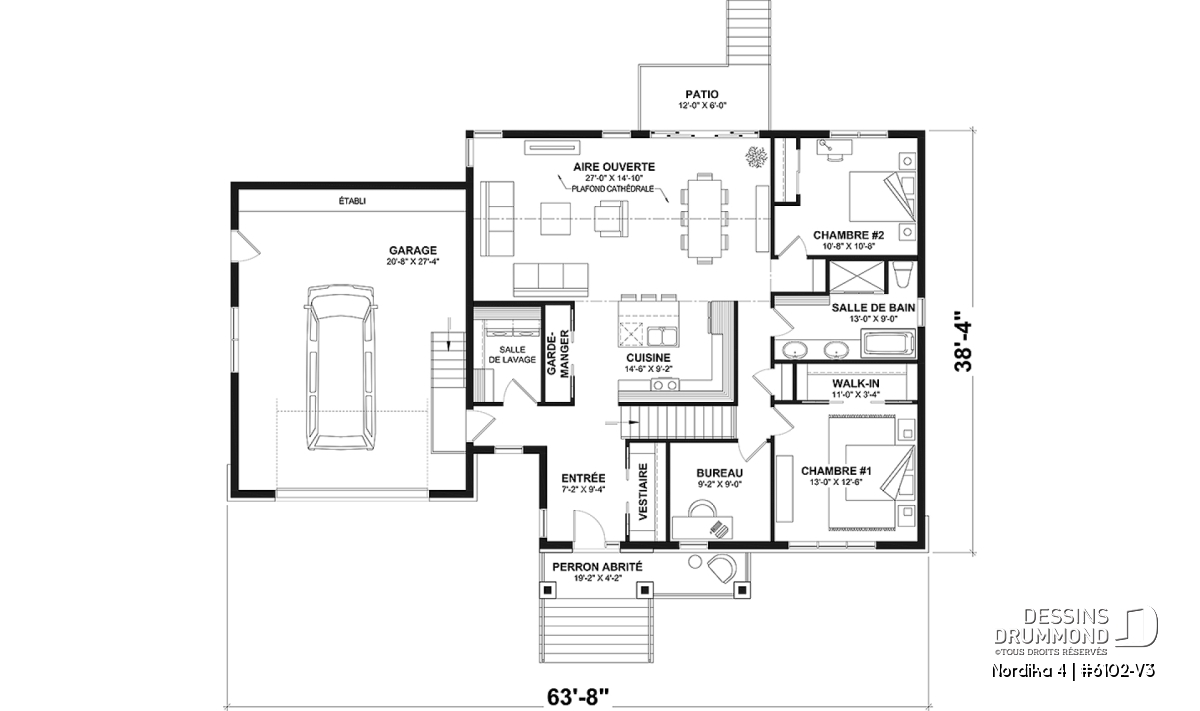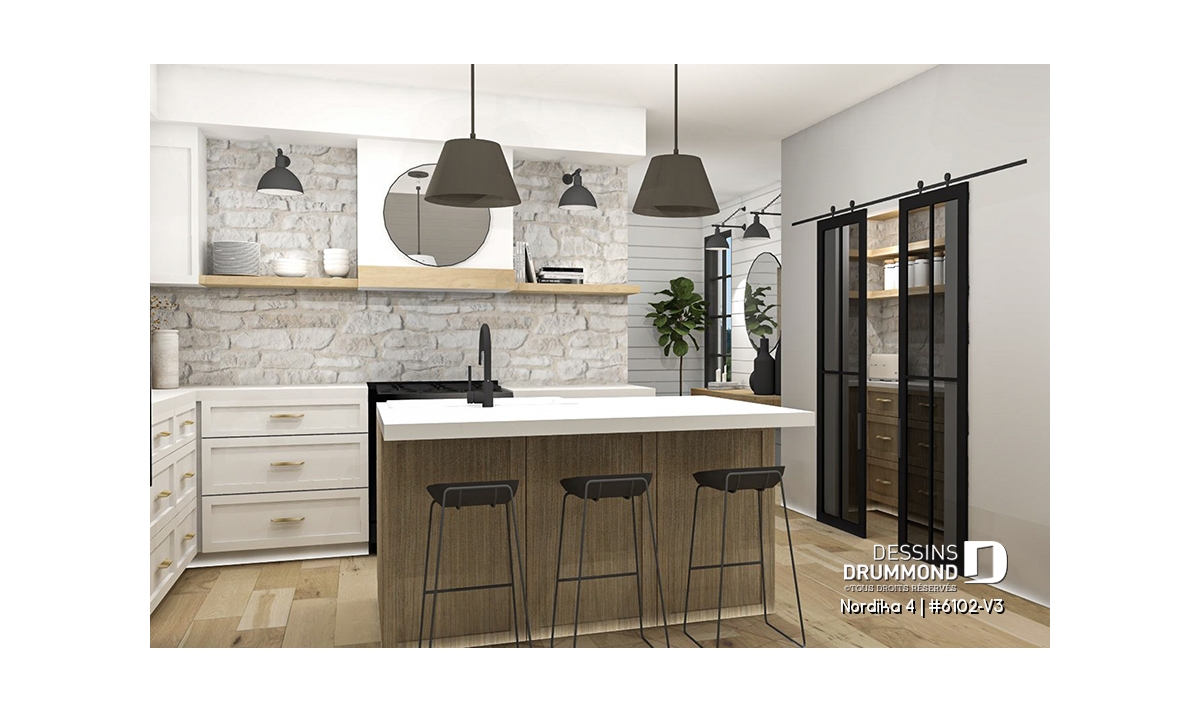 Ce plan de maison combine à merveille esthétique nordique et style Craftsman. Sa conception harmonieuse, ses grands espaces lumineux et ses aménagements fonctionnels en font un choix idéal pour les familles qui recherchent à la fois confort, praticité et élégance. Un lieu où chaque membre de la famille peut s’épanouir et créer de beaux souvenirs.