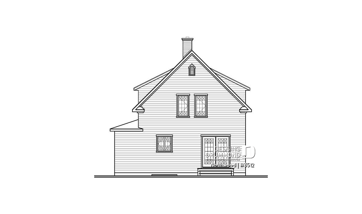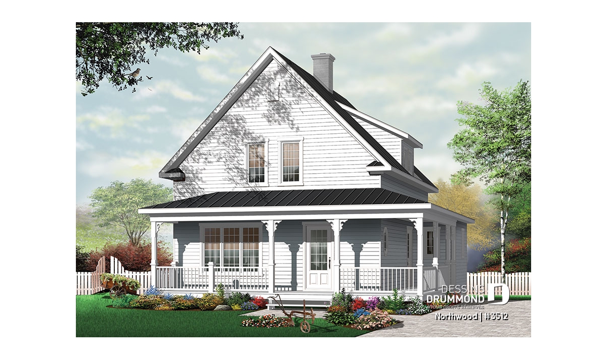 À l’intérieur, on apprécie un large rangement à l’entrée de service, une salle de séjour de belles dimensions avec foyer en coin, une salle à manger avec portes-jardin, une cuisine dégagée et un coin buanderie au rez-de-chaussée alors qu’à l’étage, on constate la présence d’une grande chambre des maîtres, d’une salle de bain située dans une lucarne identique à celle que l’on perçoit sur l’illustration extérieure et, de plus, de larges garde-robes à chacune des chambres pour encore plus de rangement.