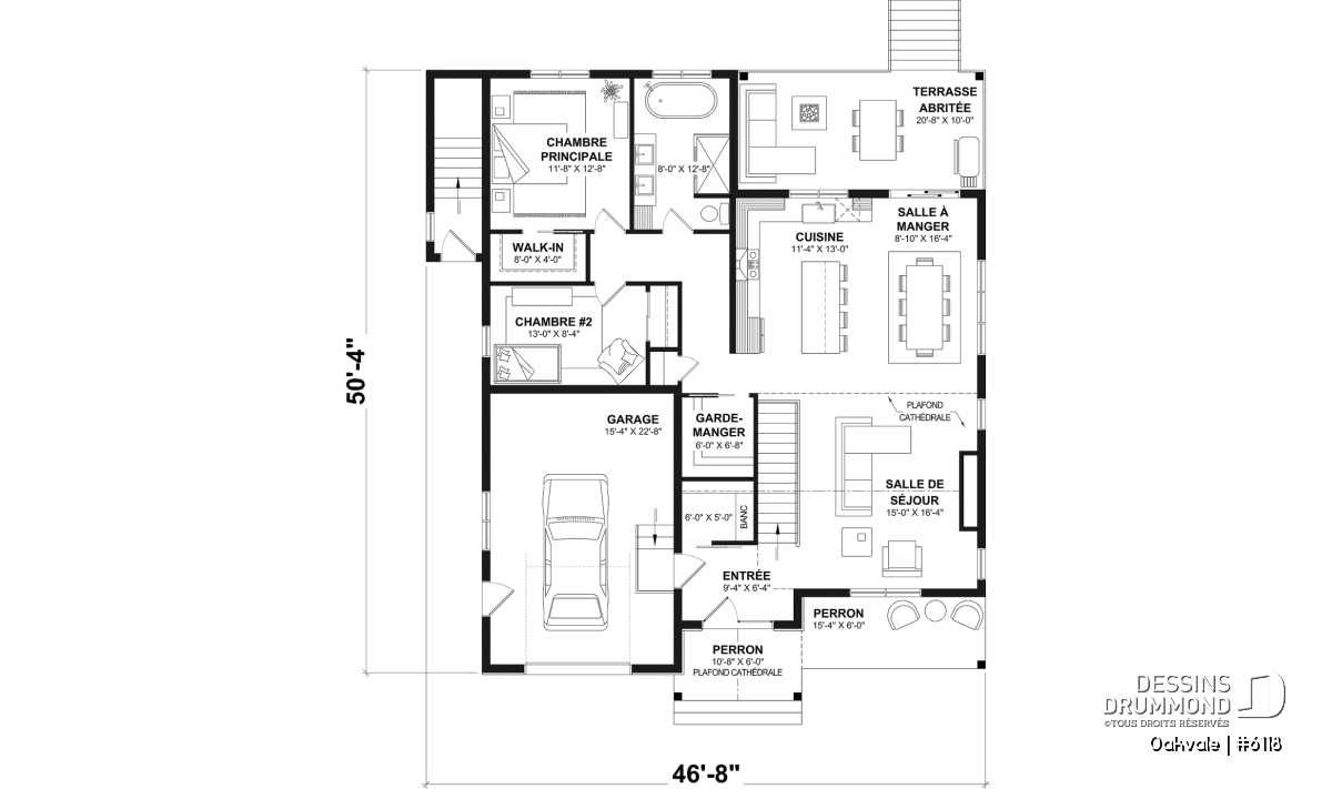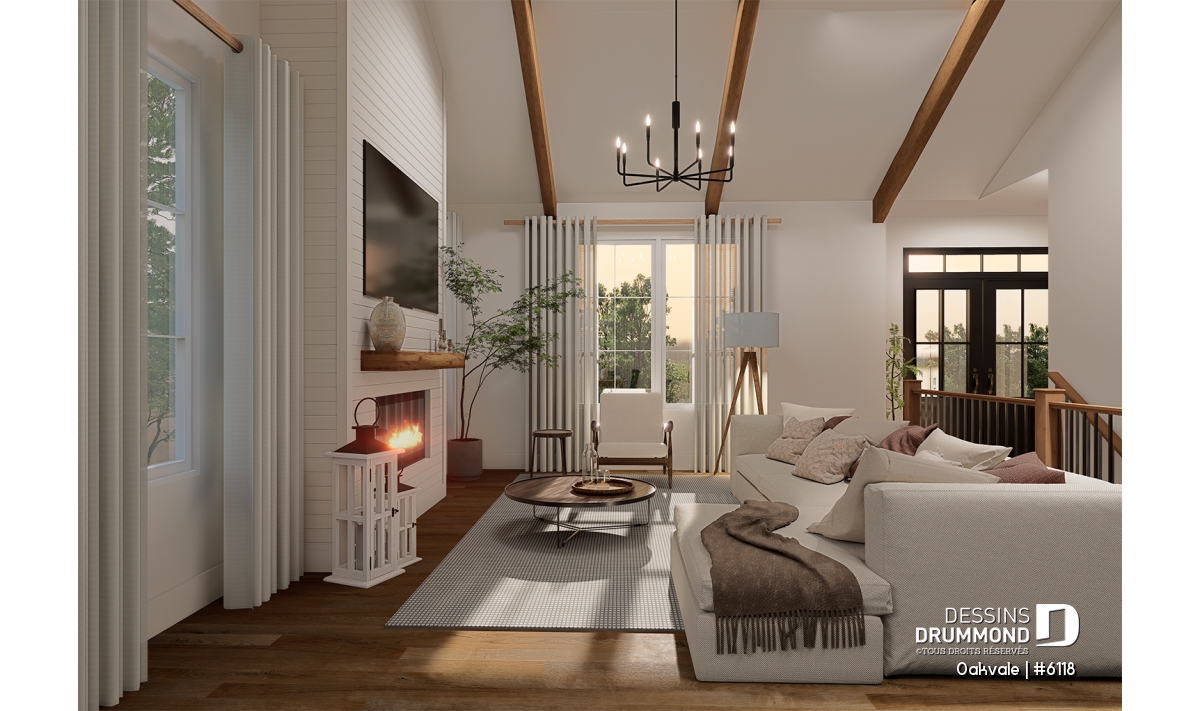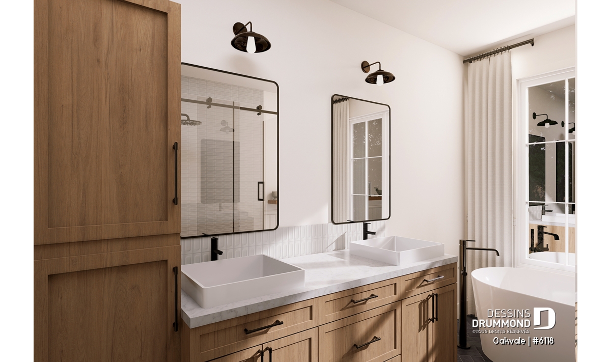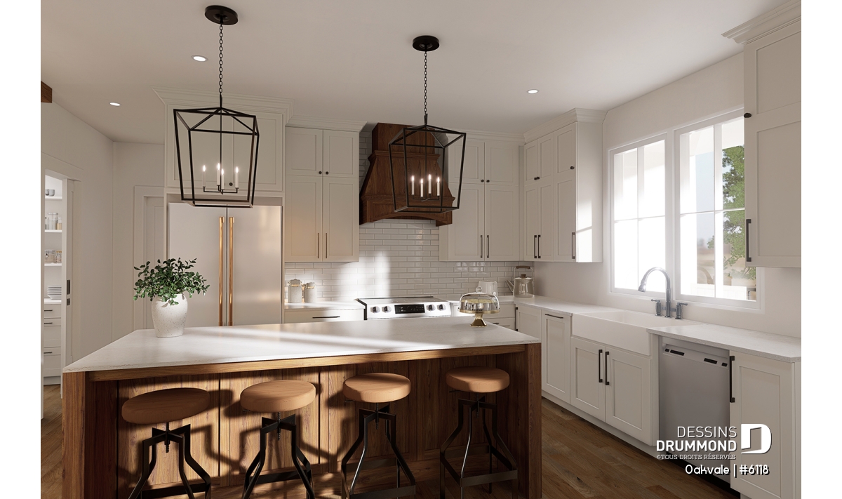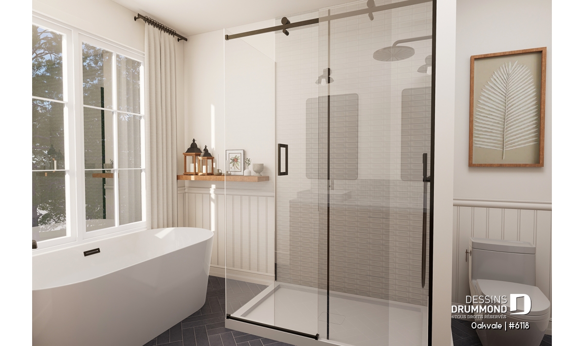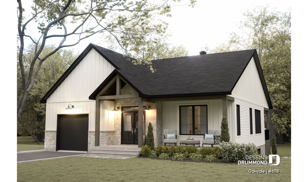 Le plan de maison OAKVALE (#6118) propose 1398 pi.ca. au rez-de-chaussée et un garage de 400 pi.ca. Une proposition de sous-sol aménagé est également illustrée (option au plan $) si vous souhaitez augmenter l'espace disponible à votre famille. Veuillez noter que plusieurs options de fondation sont disponibles.