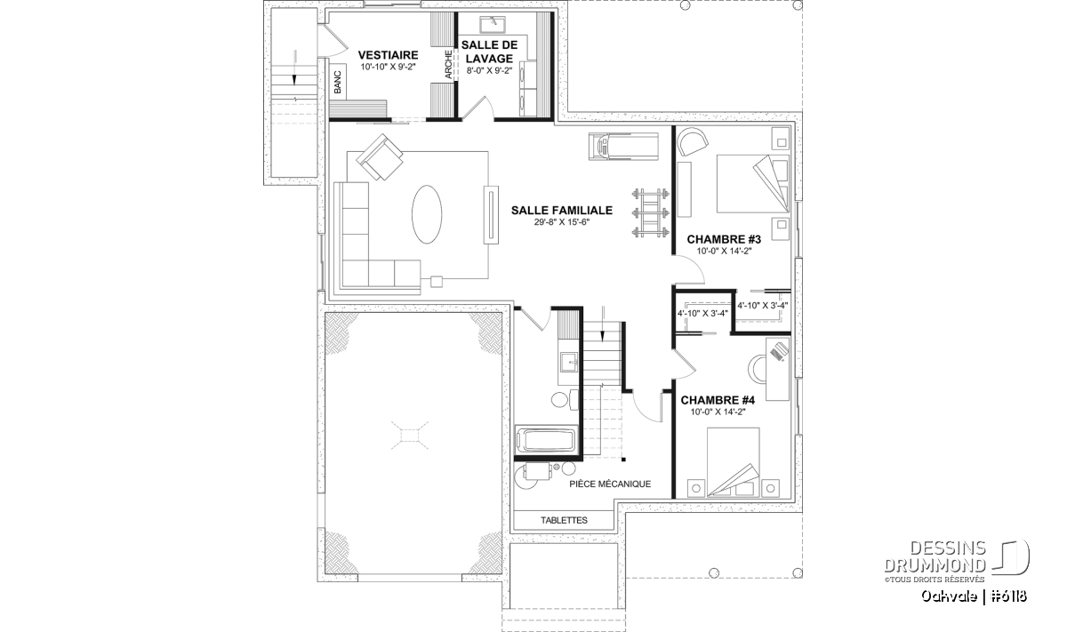 **Si vous souhaitez obtenir le plan de sous-sol aménagé, veuillez sélectionner cette option dans le panier d'achat. Si vous ne sélectionnez pas cette option, vous recevrez le sous-sol non fini, sans frais additionnel.