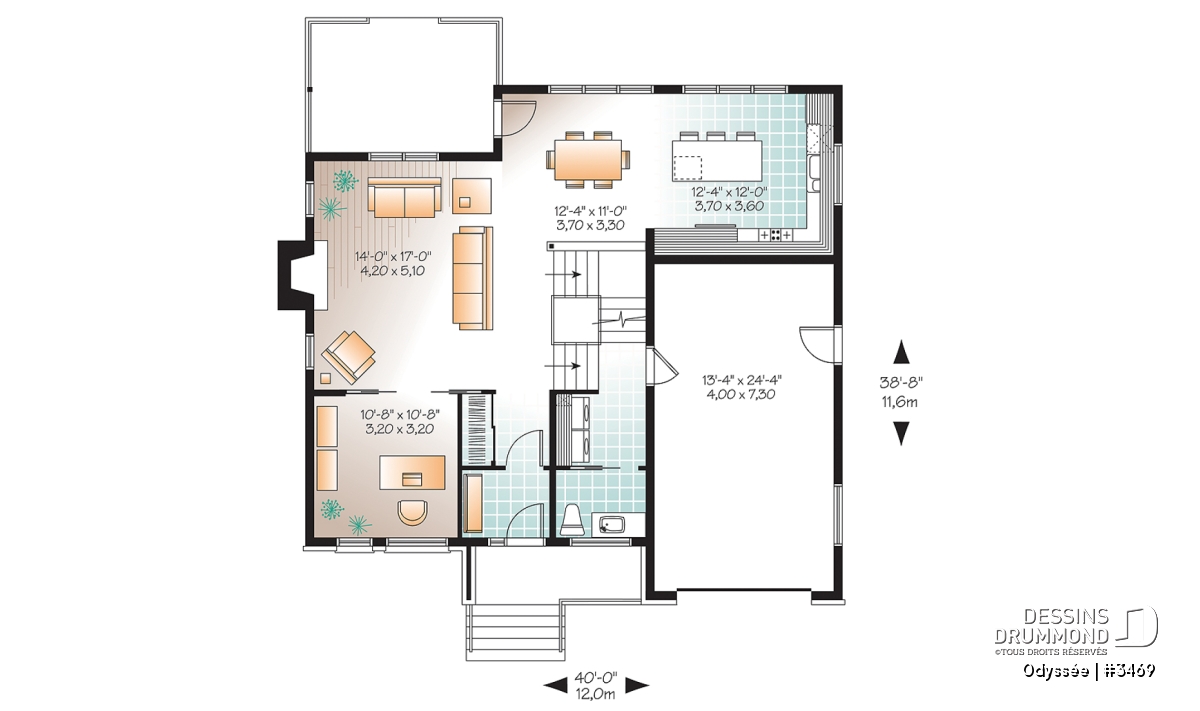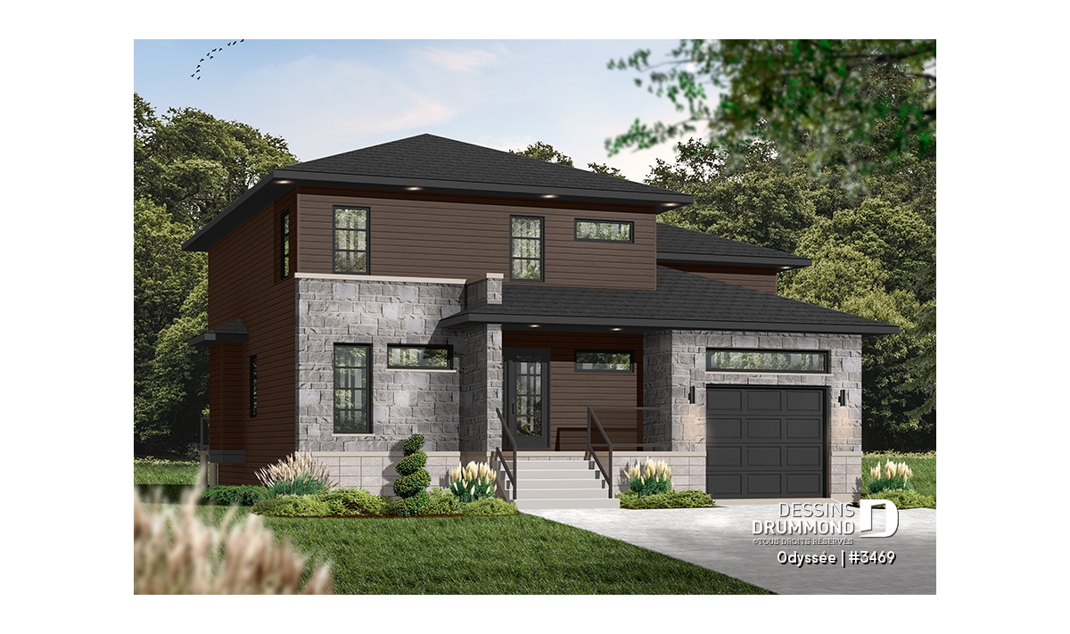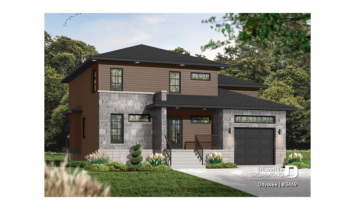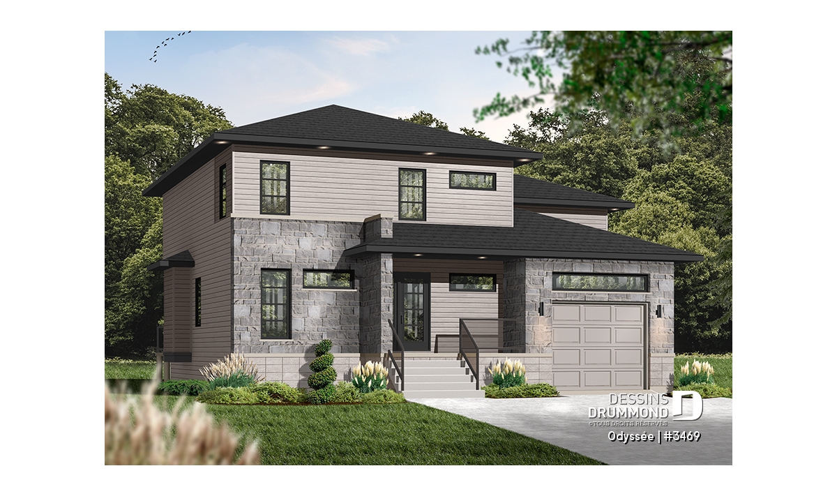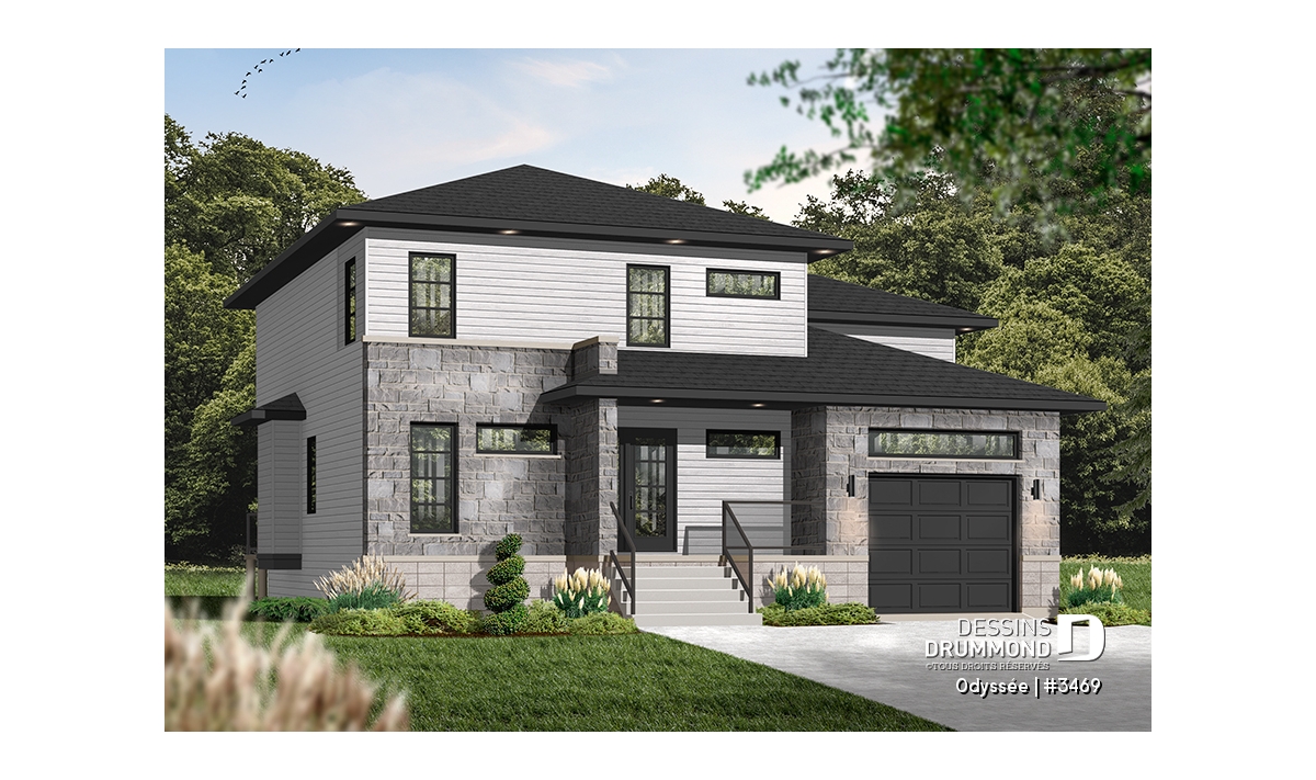 C’est une fois le vestibule franchi que l’on constate la présence d’une salle de séjour de grand format, toute en lumière et agrémentée d’un foyer. Attenant à celle-ci, on remarque un bel espace bureau à domicile avec portes coulissantes vitrées et fenêtrage approprié. Puis, sur l’arrière, on est agréablement surpris par le trio salle à manger, cuisine et dînette se traduisant ici par un îlot-lunch central de plus de 6’ x 3’ avec espace pour y intégrer un cellier. Sans oublier, tout près de l’entrée du garage, la présence de la buanderie, avec chute à linge, et d’un coin toilette.
