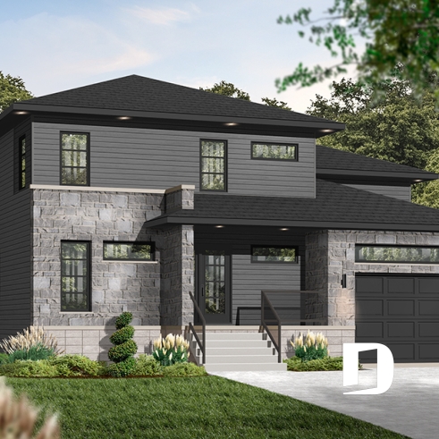 Aire ouverte, Ilôt, Chute à linge, Bureau / Salle étude, Salle de lavage au rez-de-chaussée, Foyer, Suite des maîtres à l'étage, Salle de jeux, Terrasse abritée, Bain et douche séparés, Lavabo double