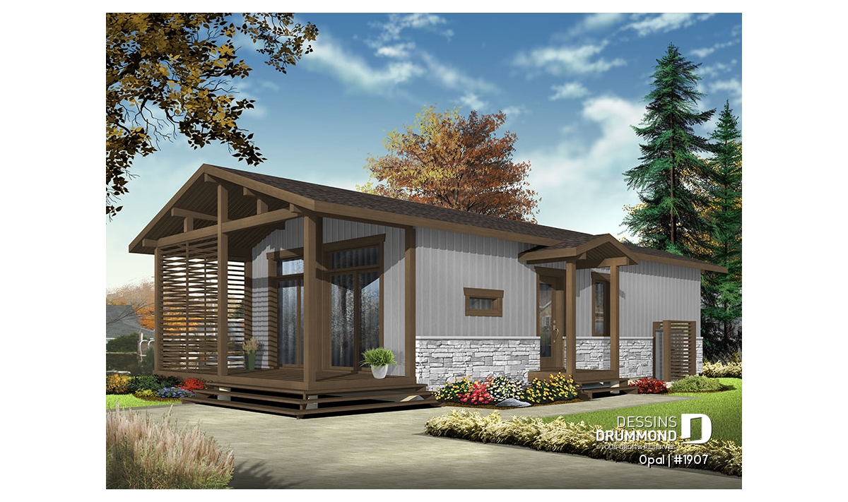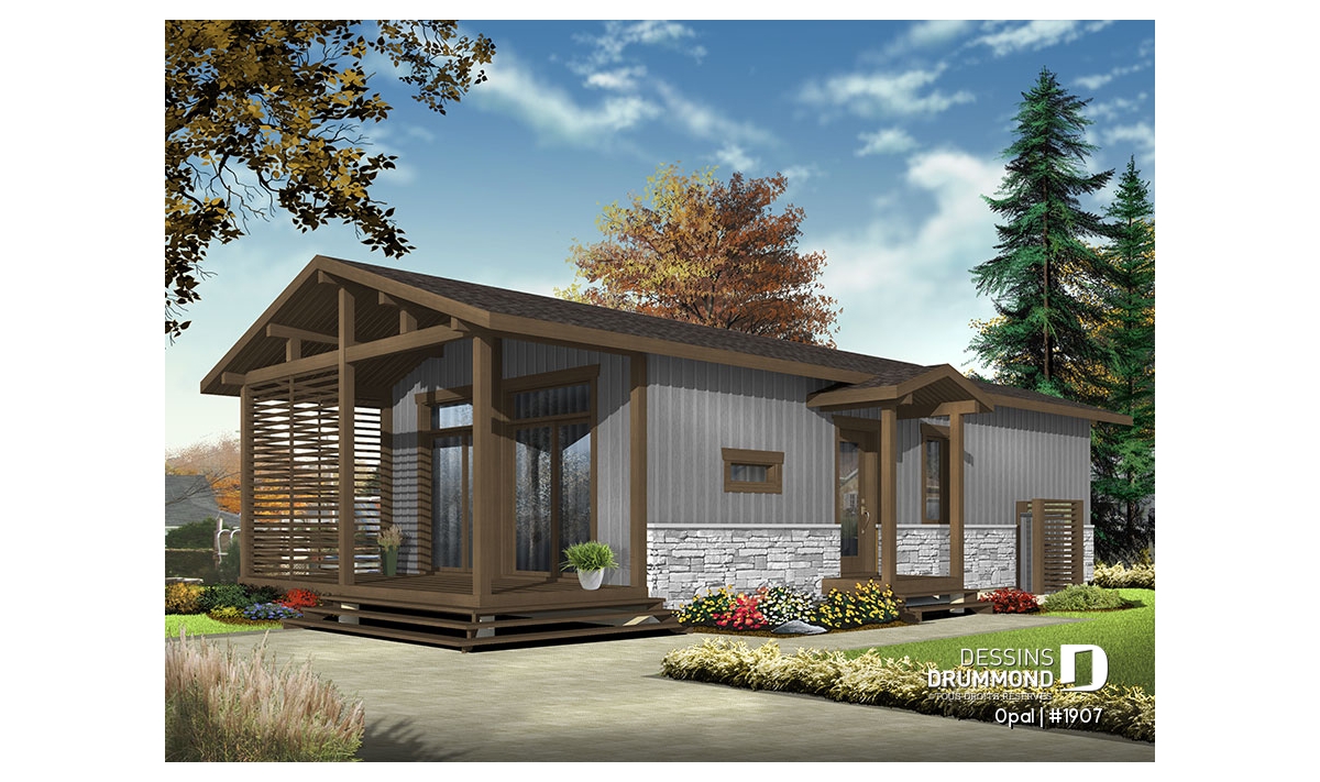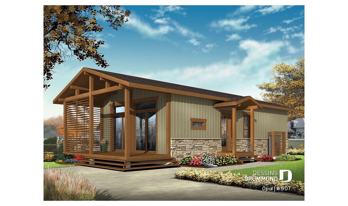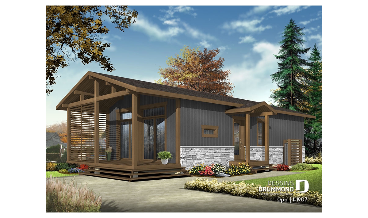 Cette micro maison (ou micro chalet) d’approche minimaliste se veut la réponse à une forte demande de maisons et chalets rustiques, à coûts de construction raisonnable. Que ce soit comme résidence principale, ou comme chalet ou camps de pêche, le design efficace de la maison chalet « Opal » fera le bonheur des gens désireux d’avoir un chez-soi abordable, à la fois chaleureux et versatile.