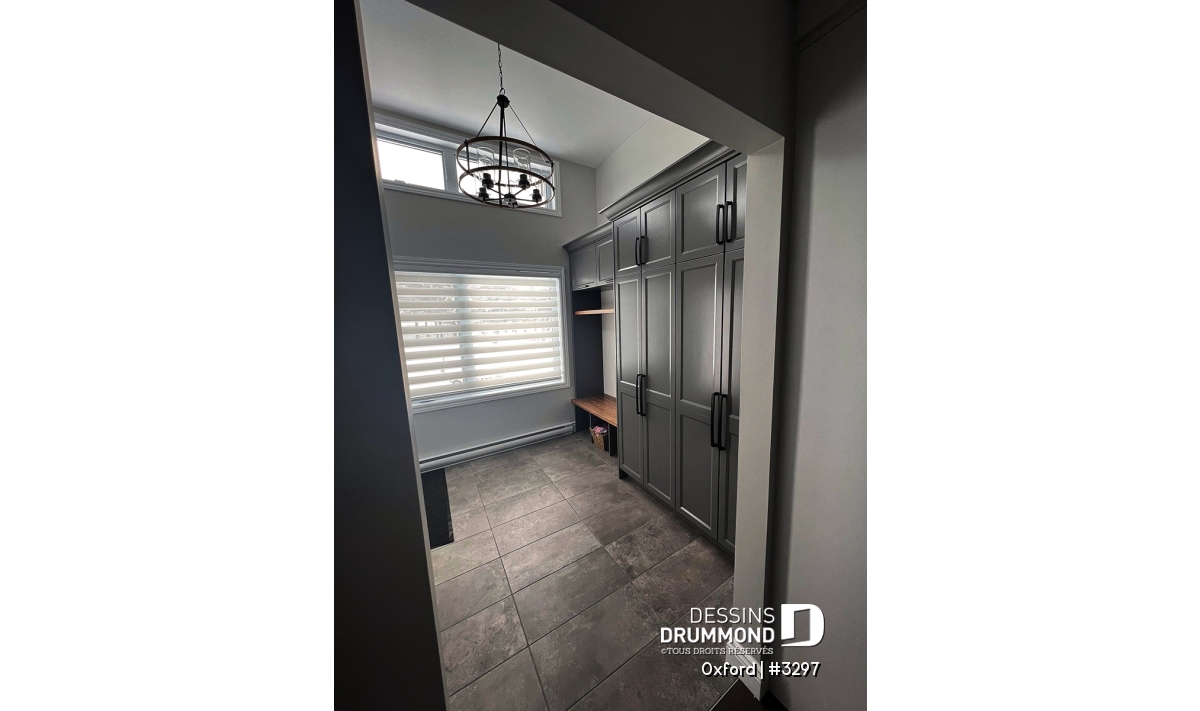 Souvent localisé au-dessus du garage, le rangement boni est utilisé uniquement comme rangement et il est généralement accessible du garage via un escalier escamotable. De plus, la finition de ce rangement boni est toujours INCLUSE dans nos estimation du coût de construction, sauf si avis contraire dans les sections « Description et/ou Éléments descriptifs » de la page du plan.
