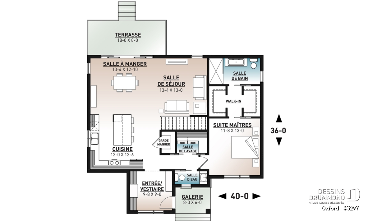 | Largeur | 40'0" | Profondeur | 36'0" |