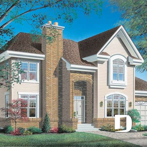 Découvrez ce plan de maison à étage de style traditionnel, pensé pour conjuguer élégance intemporelle et fonctionnalité moderne. Avec son garage double et ses espaces intérieurs soigneusement agencés, il répond aux besoins des familles qui souhaitent allier confort, prestige et praticité au quotidien.