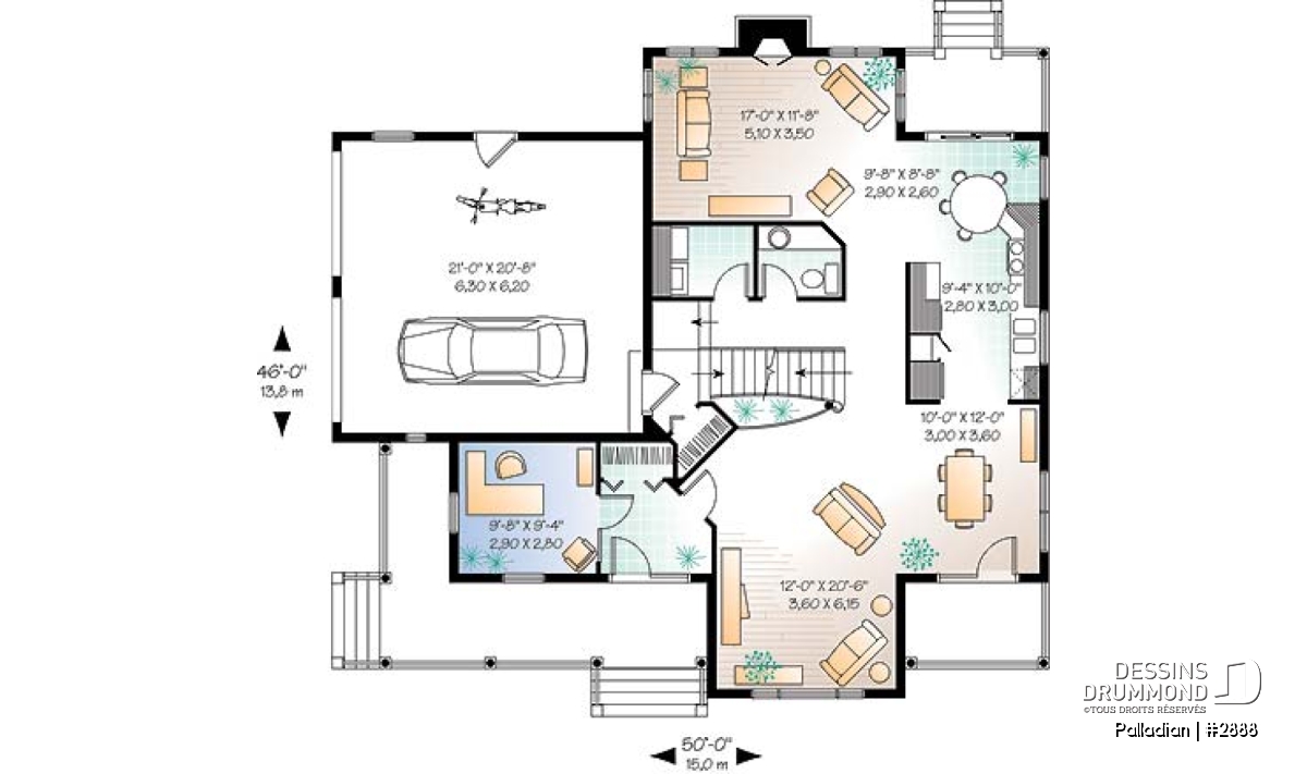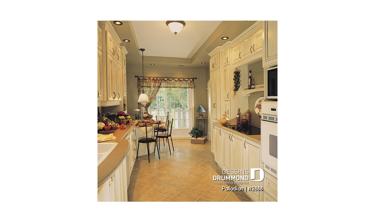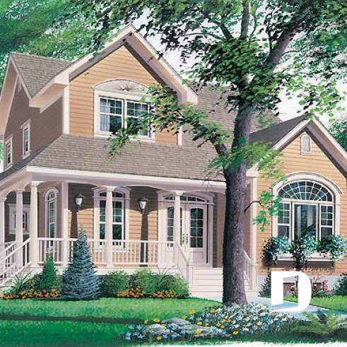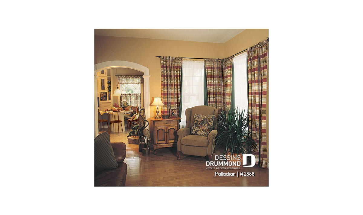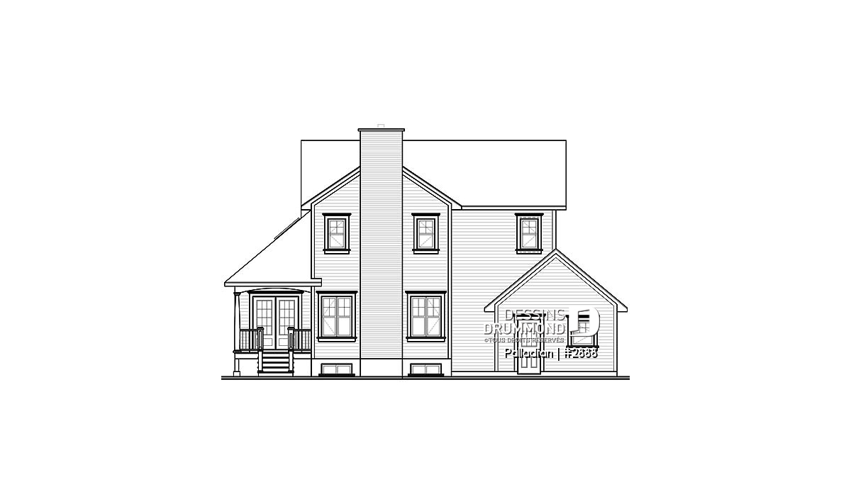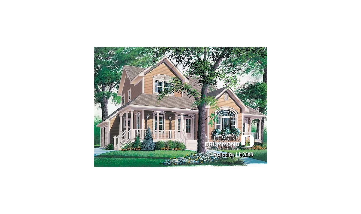 Tout à fait accrocheuse avec sa volumétrie remarquable, sa fenestration à la fois originale et bien encadrée, la discrétion de son garage double et ses galeries indépendantes, cette maison se veut assurément un classique d’esprit américain.