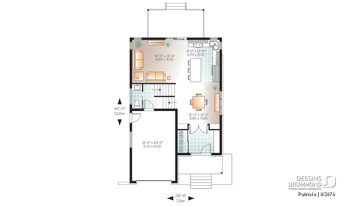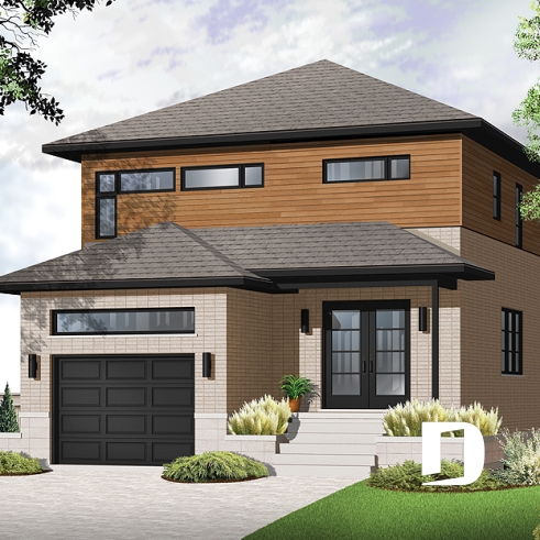 Réalisé dans la foulée de quelques autres modèles pensés pour des terrains étroits comme le 3877, aussi de style contemporain, ce cottage se veut une solution fort attrayante pour les futurs propriétaires à la recherche d’un plan aménagé selon les commodités d’aujourd’hui et aux prises avec un terrain passablement étroit.