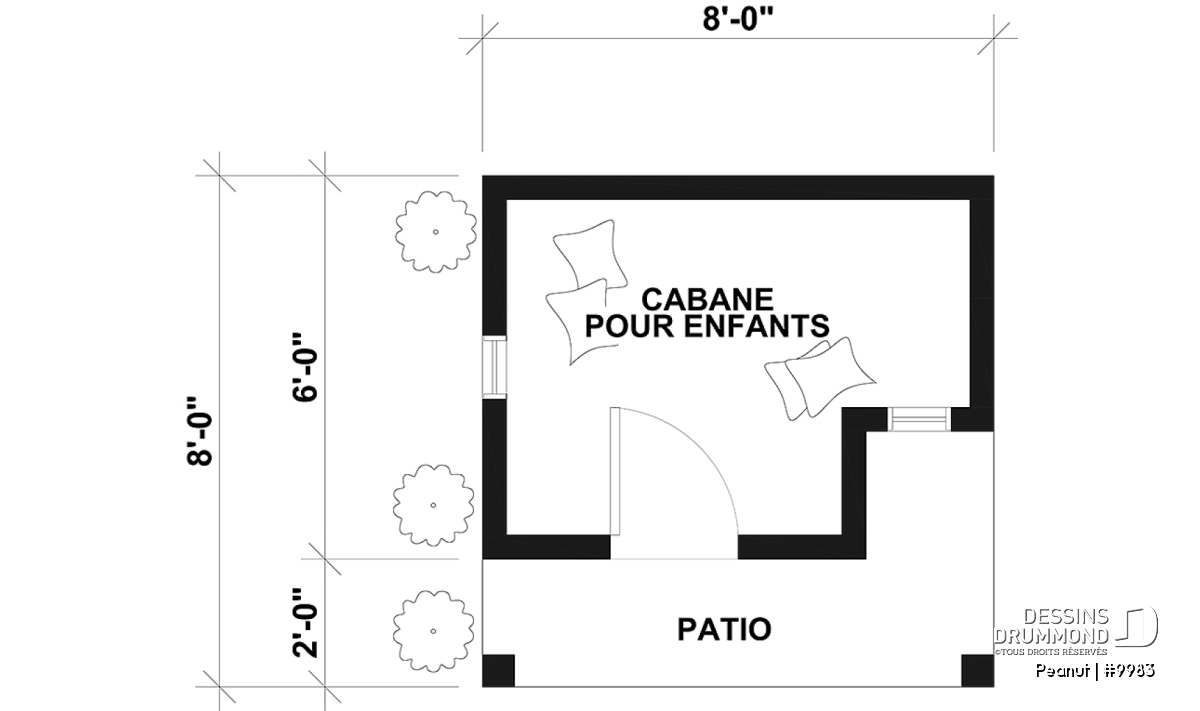 Petite maisonnette pour enfant de 8'-0" x 6'-0", perron non inclus