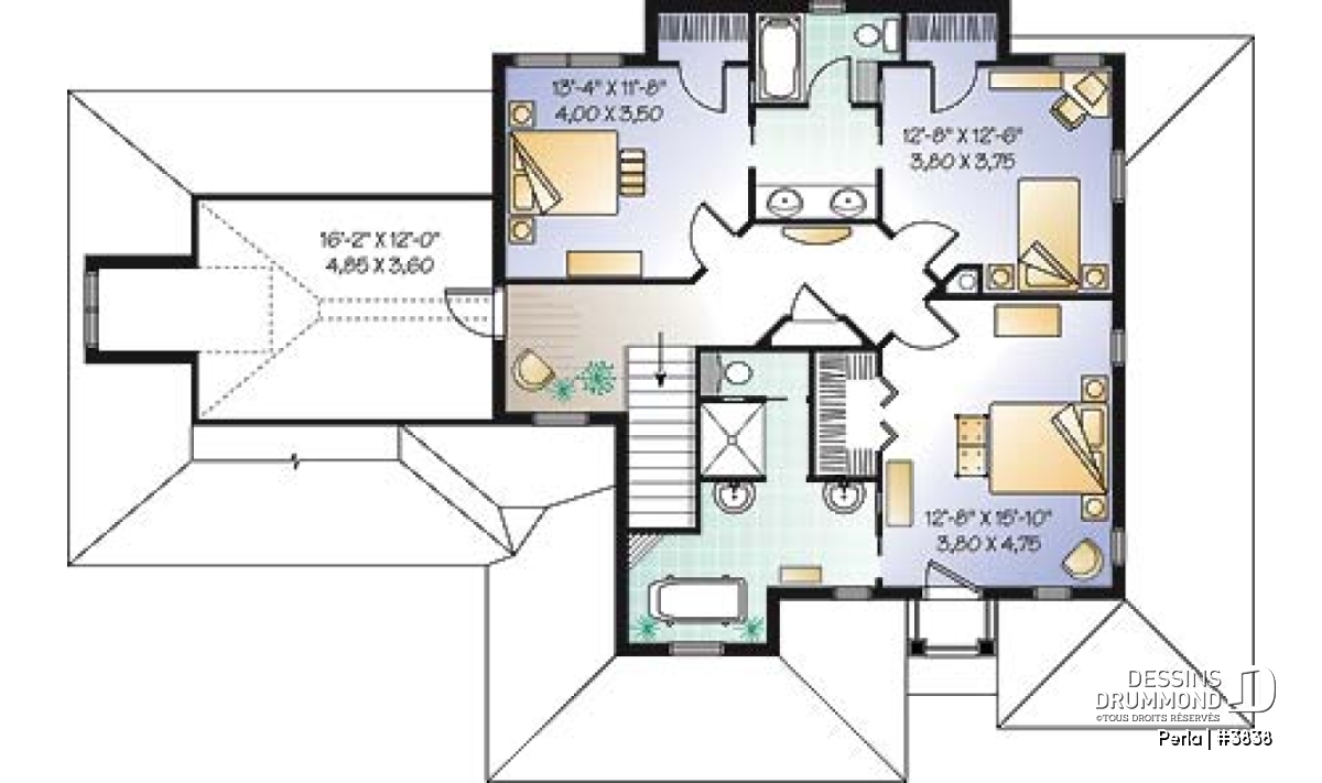 Jeux original de galeries et balcon. Belle salle de séjour avec bibliothèque encastrée et foyer ouvert sur trois côtés. Cuisine confortable et bien organisée. Suite des maîtres remarquable et espace boni non négligeable même si avec plafond en pente à 85%.