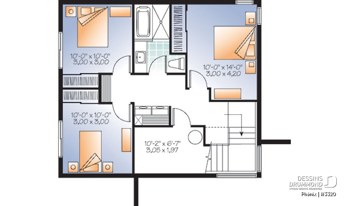 À l’intérieur, une percée de lumière naturelle et spectaculaire retient d’abord notre attention alors qu’on apprécie une garde-robe d’entrée de 6’ de largeur et un palier permettant l’accès à quelques personnes en simultané. Par la suite, on constate un secteur activités entièrement ouvert avec cuisine fort logeable, îlot-lunch de tout près de 8’ x 3’, rangement attenant et/ou garde-manger walk-in et coin toilette. Au sous-sol, passablement sorti du sol pour l’obtention de fenêtres appréciables, on remarque trois chambres de beau format, un coin buanderie, un rangement et une salle de bain complète avec combo douche/bain de 5’ x 5’.